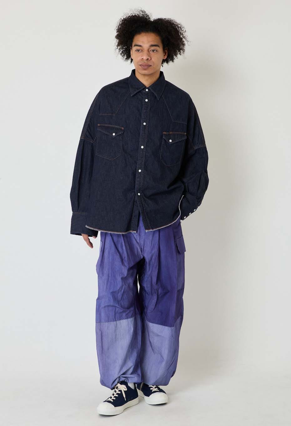 ブランド定番のバギートラウザーズ同様、フロントに大ぶりなプリーツ、膝の切り返しを施した立体的なシルエットです。
