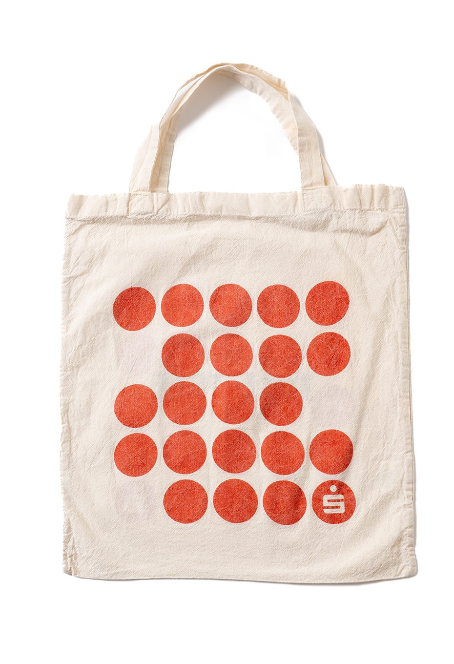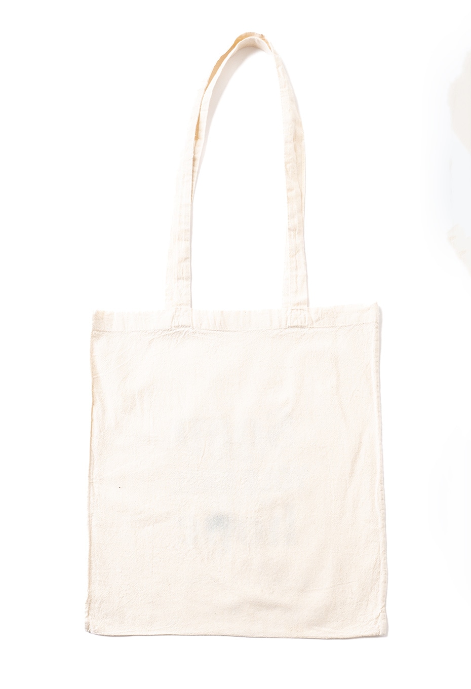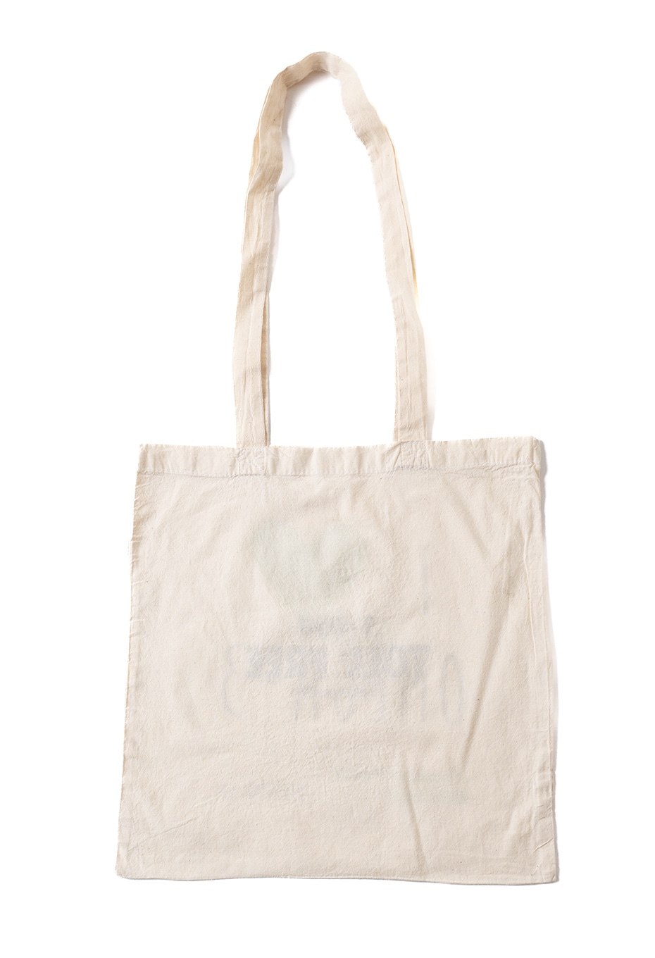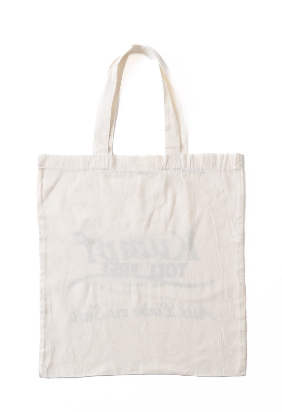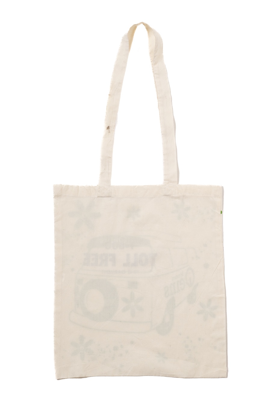 TOLL FREEのスタッフが、元のデザインの上からベタ塗りでオリジナルロゴをハンドプリントし、化学反応を起こしたかのような、馴染みの良い新しいデザインに仕上げています。ハンドプリントと元々のデザイン、ボディが相まった、世界に一点だけのエコバッグです。