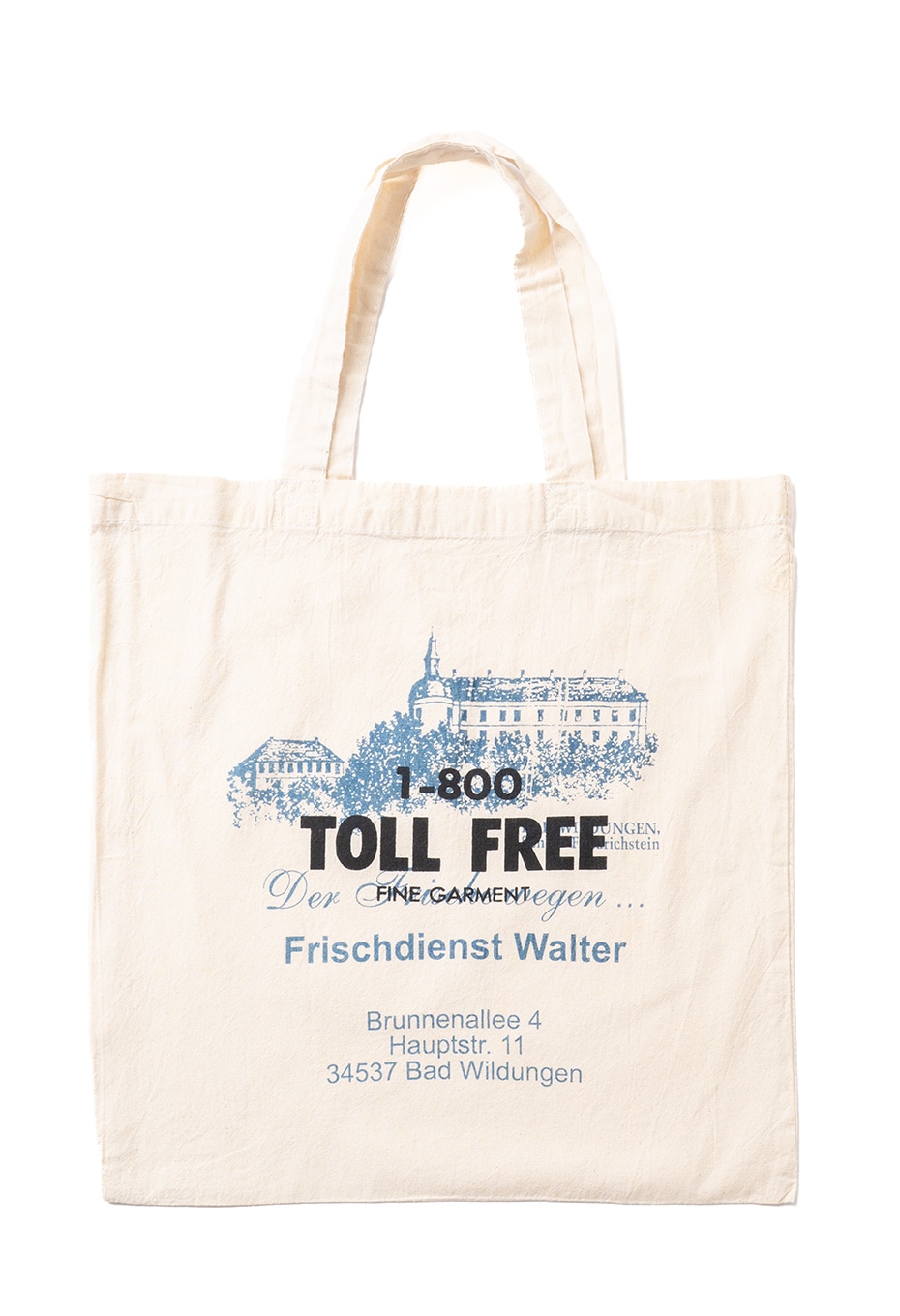 - TOLL FREEがヨーロッパやアメリカで買い付けたヴィンテージのエコバッグに、「1-800 TOLL FREE」のオリジナルロゴをオーバープリントした一点です。