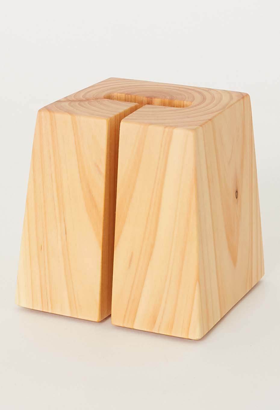 ヒノキの香りを残すため、表面はオイルフィニッシュ仕上げです。底面には鉛の重りを埋め込んでいます。