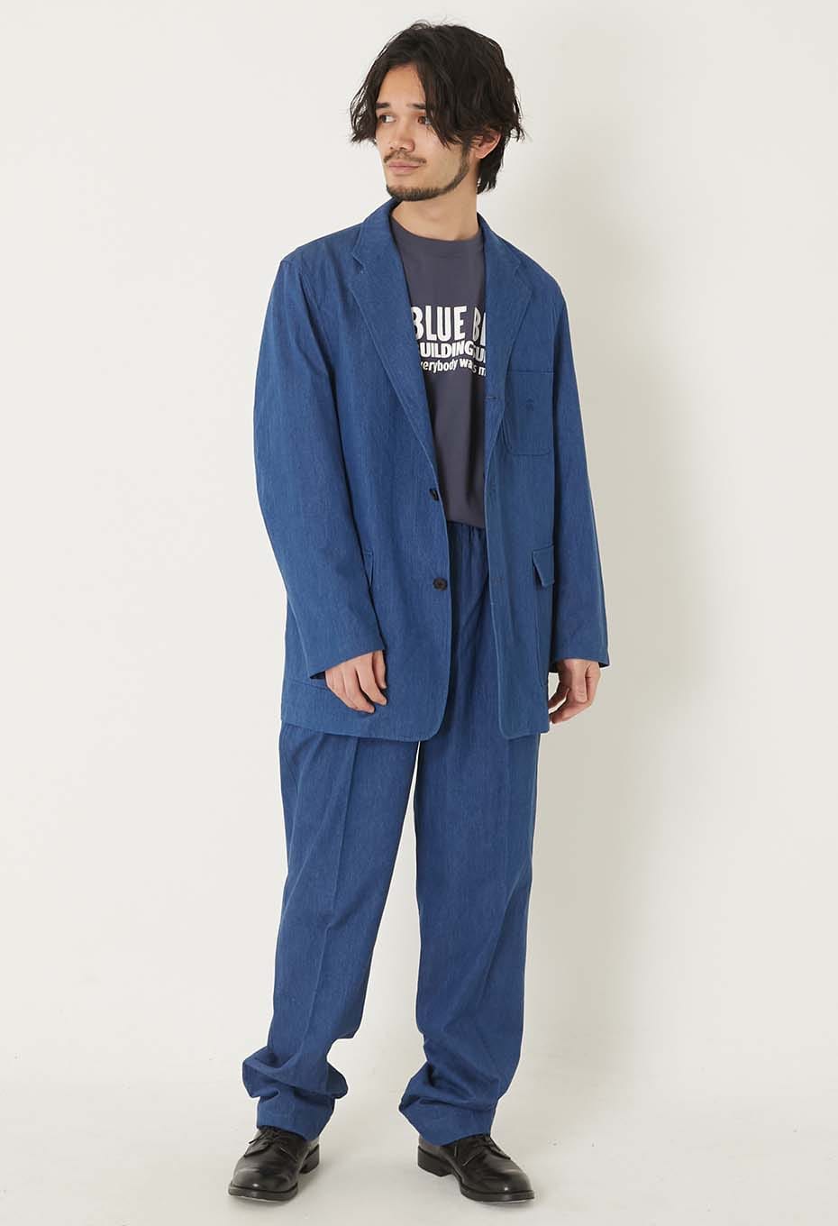 ベースとなるのは、Brooks Brothersの端正なジャケットの設計。そこにBLUE BLUEがオリジナルデニム生地で別注をかけ、日本の縫製技術で丁寧に仕立てています。