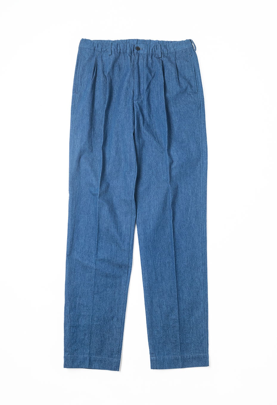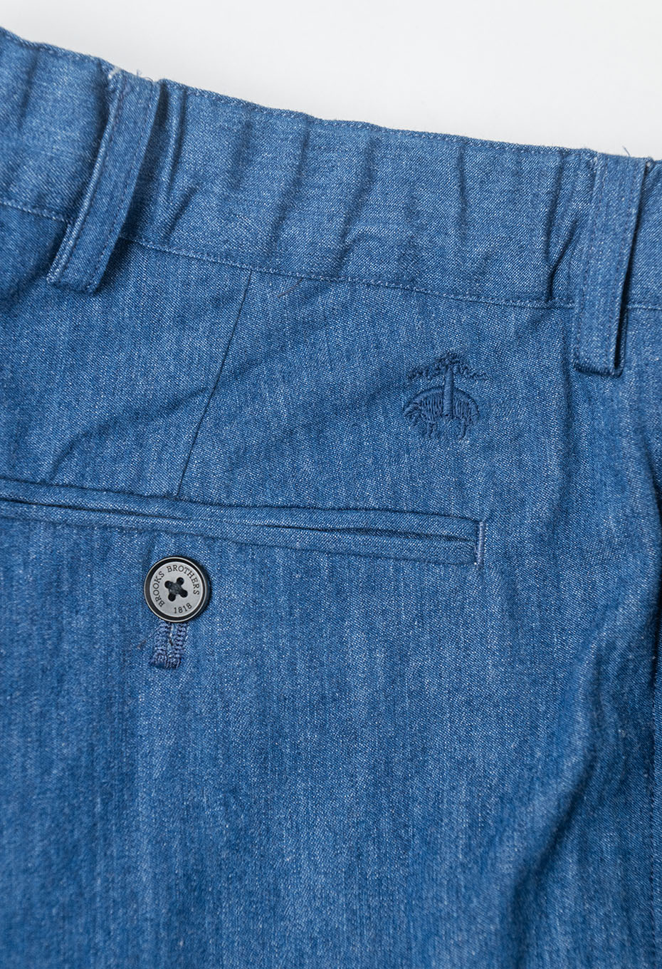 ベースとなるのはBrooks Brothersのスラックスの設計。そこにBLUE BLUEがオリジナルデニム生地で別注し、日本の縫製技術で丁寧に仕立てています。