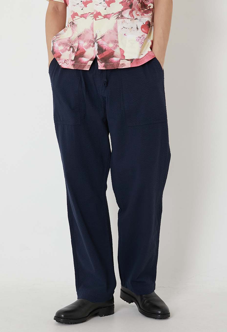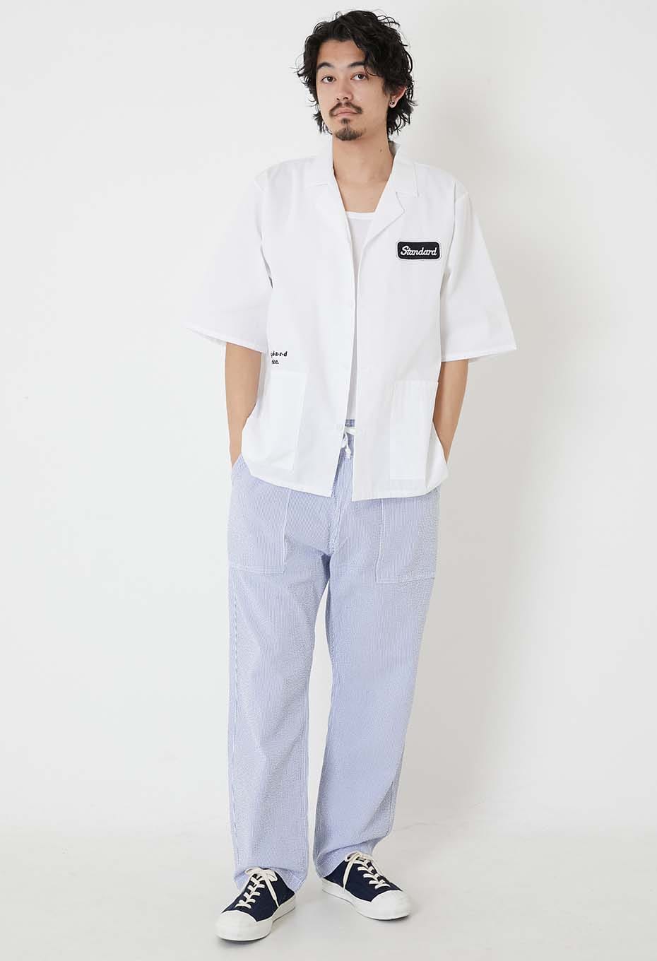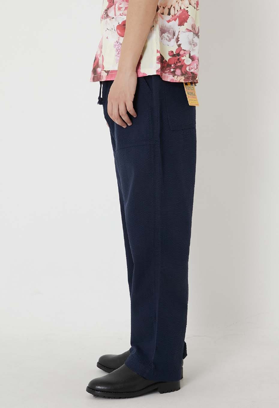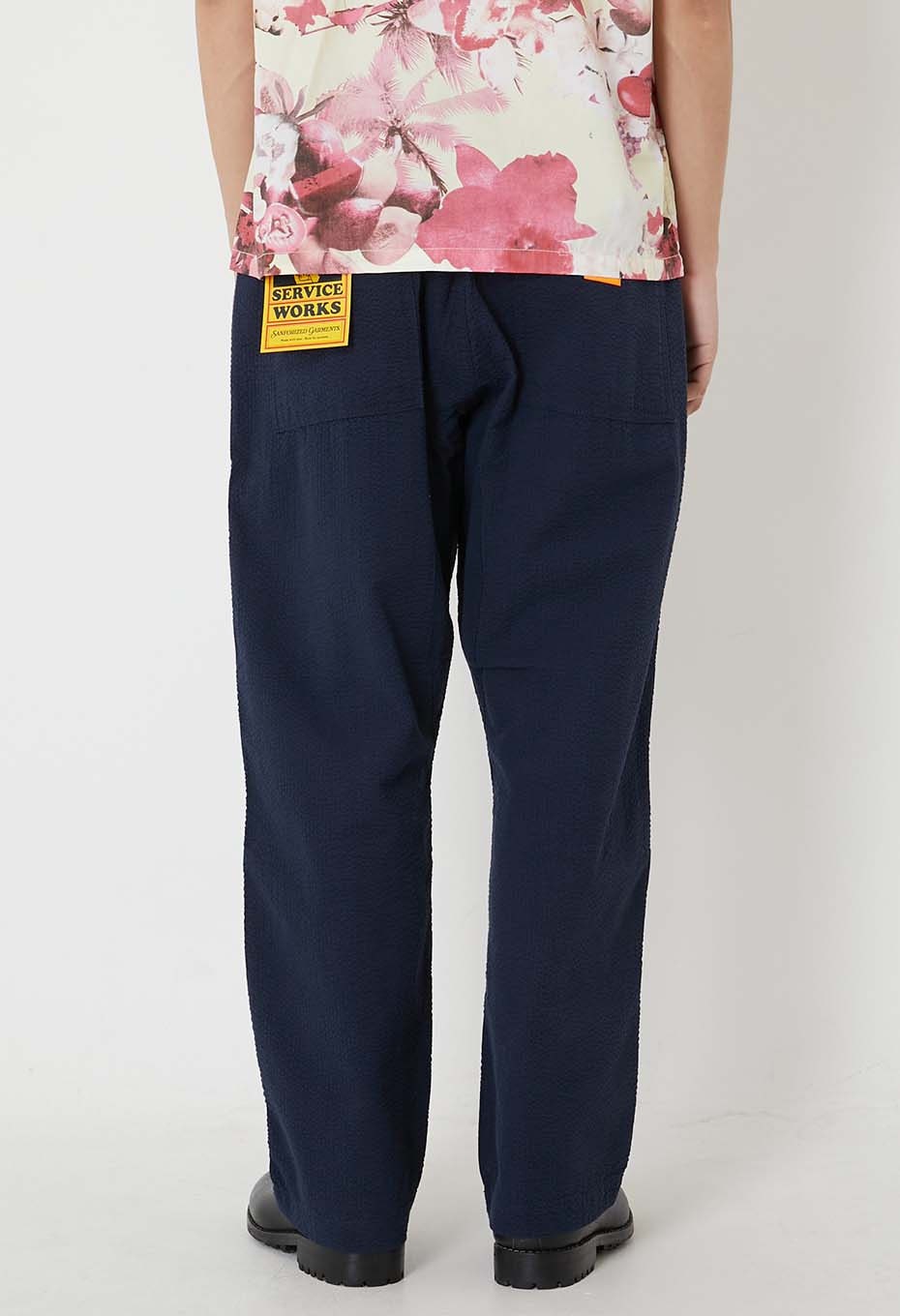 - GOTSオーガニック認証のシアサッカーコットンシェフパンツです。シルエットはゆったりとしたストレートで、ウエストバンドにはドローストリング付きによりウエスト調節が出来ます。ファティーグパンツのようなフロントポケットにバックポケットにService Worksオリジナルの織りネームを配しています。