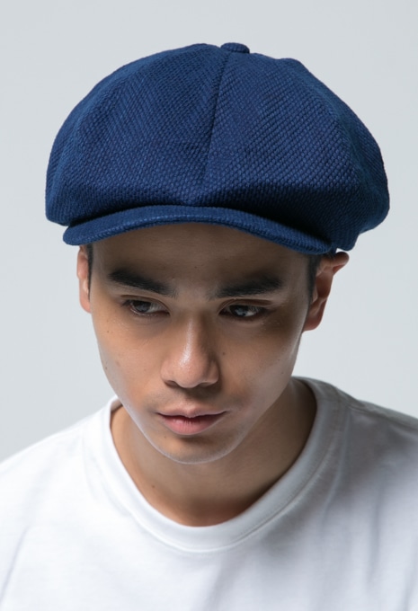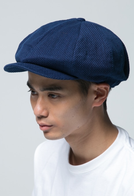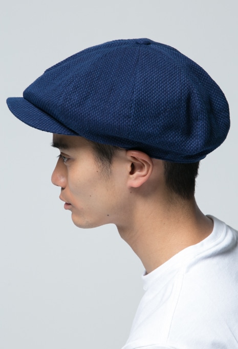 - インディゴかせ染めの糸で織り上げた、シャツのような薄さとやわらかさが特徴のオリジナルの刺子生地を使用しています。ワークスタイルにおすすめのボリュームのあるキャスケットです。
