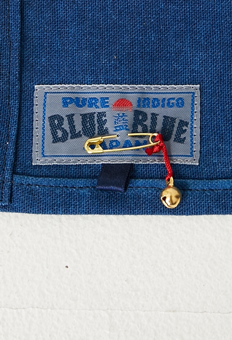 - 注意事項 この製品は本藍染めの素材を使用していますので、繰り返し着たり、何度も洗濯することにより濃いブルーから淡いブルーに移り変わっていきます。白、又は淡色のものと組み合わせて着たり、重ね着をすると色が移りますので避けて下さい。洗濯の際は色が落ちますので単独洗いでお願いします。