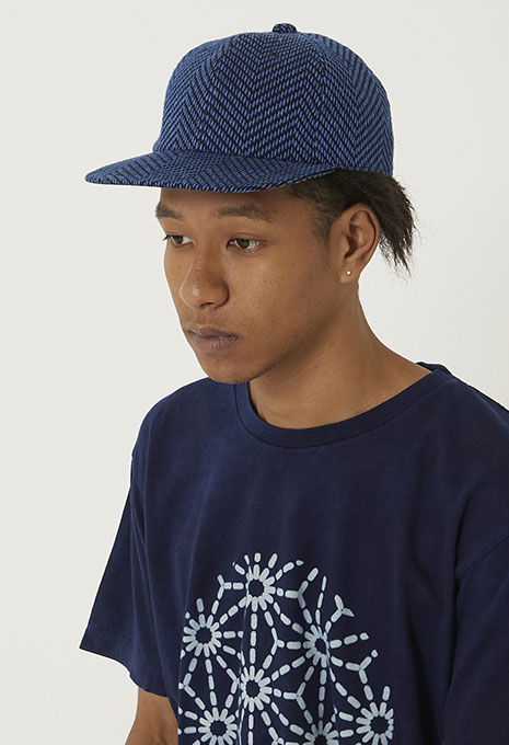 - ジグザグした山道をステッチで施したような刺し子生地。インディゴの濃淡2色の糸を使用しドビー織機で織りあげました。先染めならではのゆっくりとした経年変化をしていきます。全く異なる表情を持つ表と裏をそれぞれ使用した2色展開です。クラシックデザインのベースボールキャップで、スタイリングのしやすさも魅力。同素材のジャケットやパンツとのスタイリングでアンサンブルも楽しんでいただけます。
