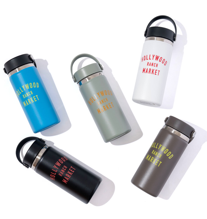 アメリカ発のボトルブランドHydro Flaskとのコラボレーション。 HOLLYWOOD RANCH MARKETのアイコニックなモチーフをプリントしたボトルです。鮮やかな配色に目を惹くプリントの配色がポイント。