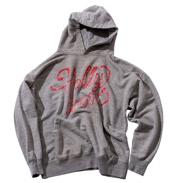 使い込まれたヴィンテージのように剥がれたラバープリントがポイントのフーディです。 リサイクルコットンを使用したオリジナルスウェットボディを使用しています。 柔らかな生地の風合いを活かしたゆるやかなシルエットになっています。