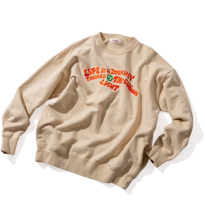 数種類の糸色をミックスした刺しゅうで表現したアイコニックなモチーフがポップな印象のクルーネックスウェット。 従来のスウェット生地に比べ、柔らかくしなやかな生地を使用しています。 身幅にかなりゆとりを持たせ、肩が自然に落ちる緩やかなシルエットに仕上げています。 使い勝手の良いサイドポケットもポイントです。