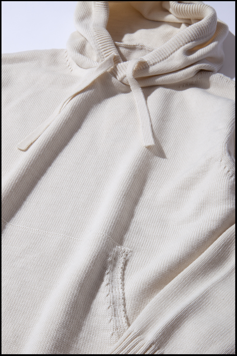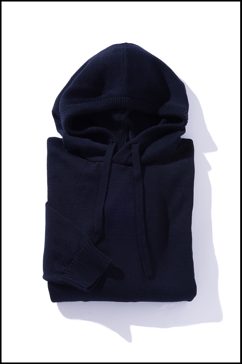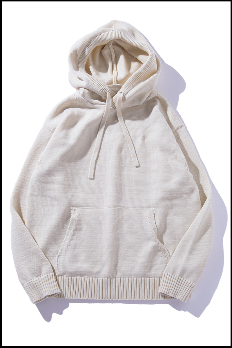 シームレスで快適な着心地のニットパーカーです。