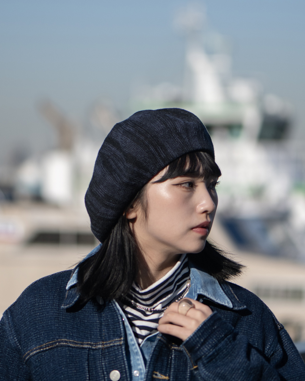 :ミックスコットンウールニット ビッグベレー