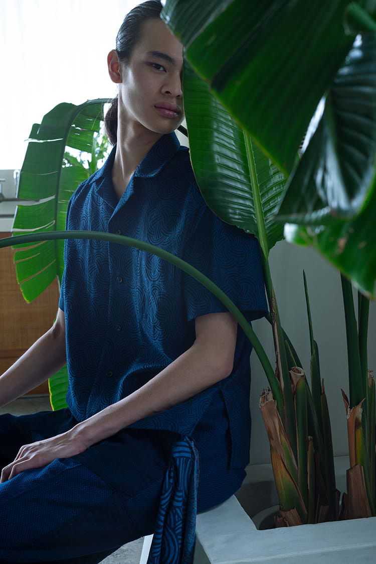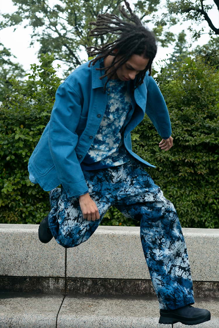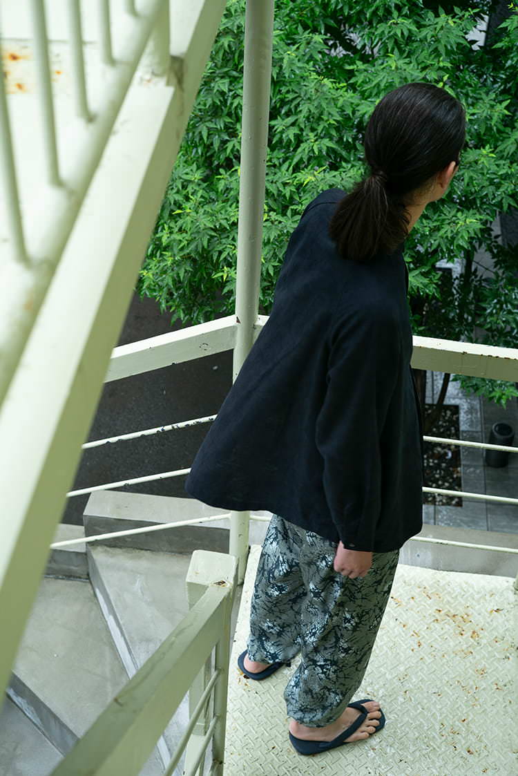 ソフトコットンガラスジャカード インディゴテゾメ ドローパンツ