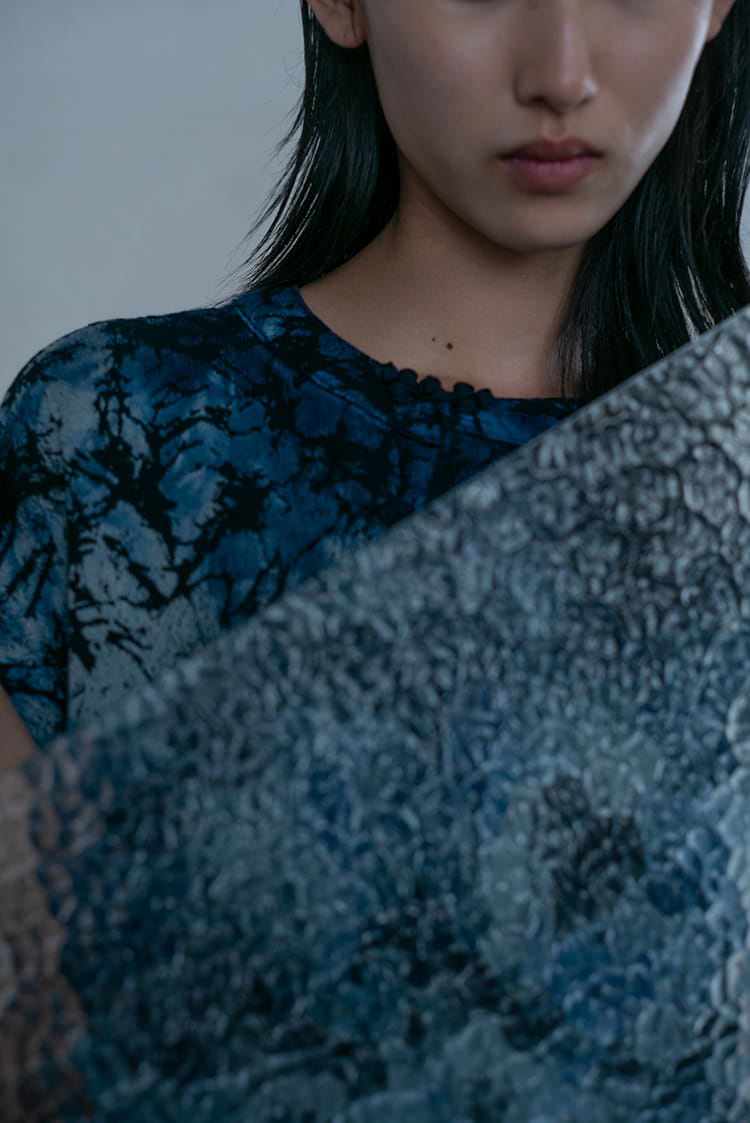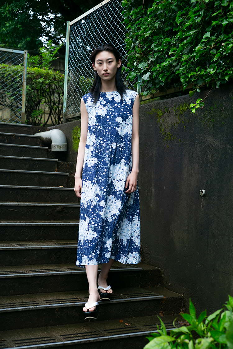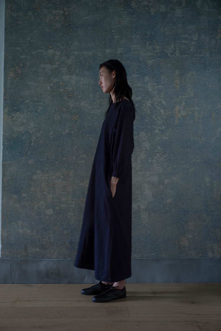 ソフトコットンガラスジャカード インディゴテゾメ プルワンピース