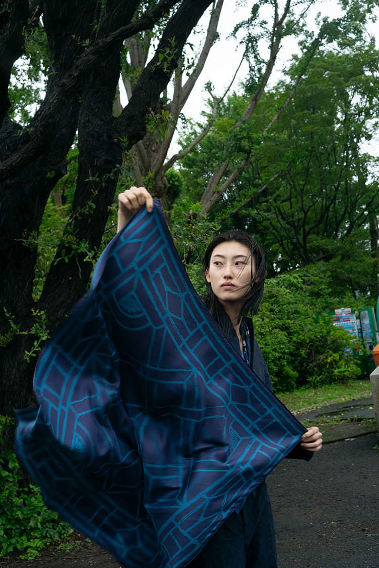 ソフトコットンガラスジャカード インディゴテゾメ ハオリジャケット