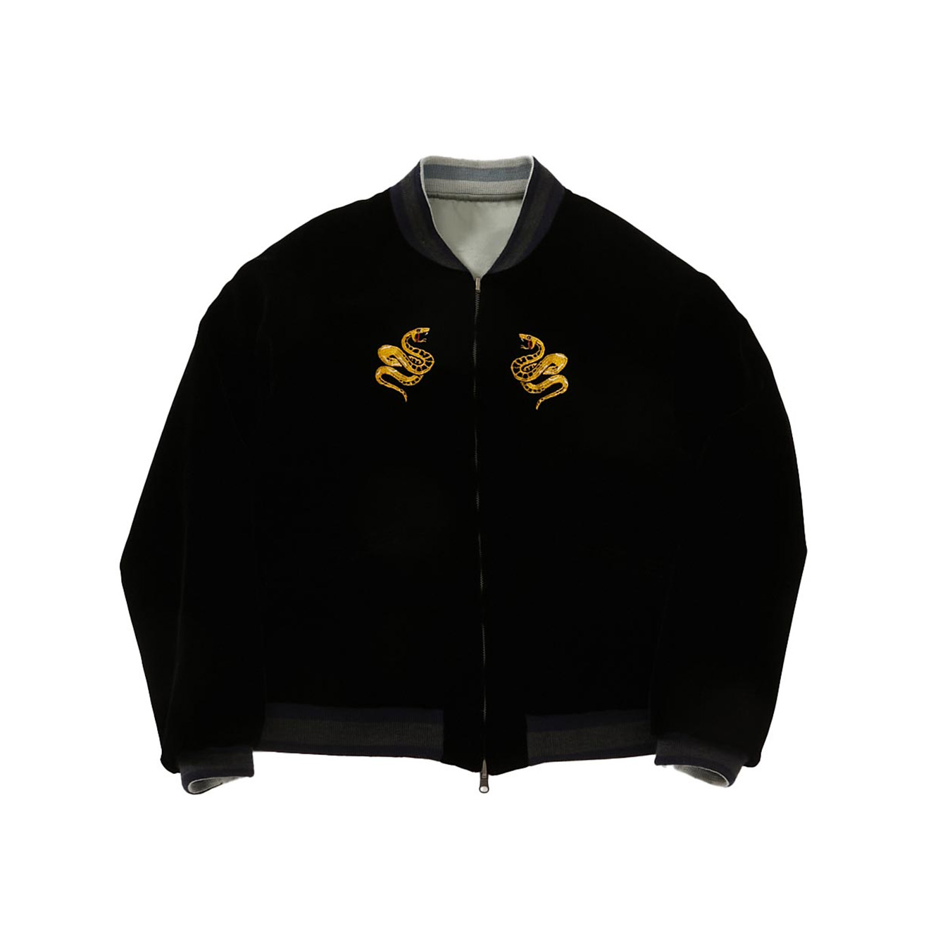 表と裏にそれぞれ施されたトラにフジ、2025年の干支であるヘビを配した刺しゅう柄は縁起が良いです。