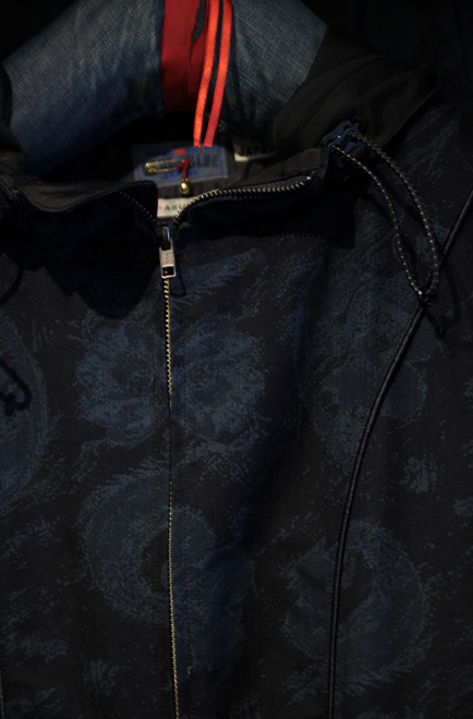 織、染ともに国内有数の福井の工場で一貫生産している生地です。裏にはフライトジャケットなどに使用される裏ボアでかさ高性のあるソフトかつ肉感あるサテンを使用しています。