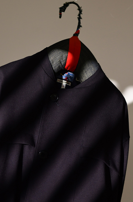籠染めによる奥行きある表情と、ウールの温かみを活かした、上品で風合い豊かなアウターに仕上がっています。
