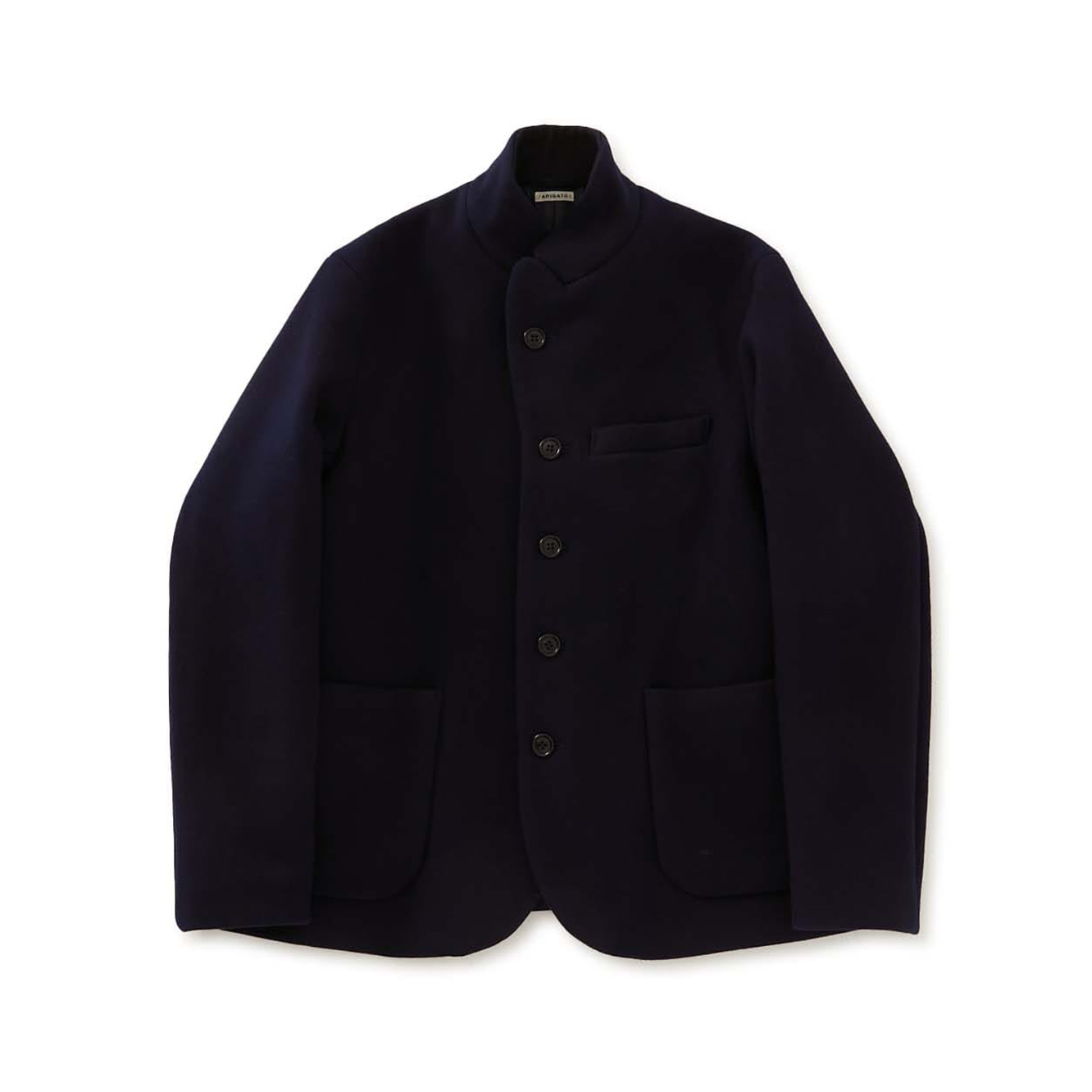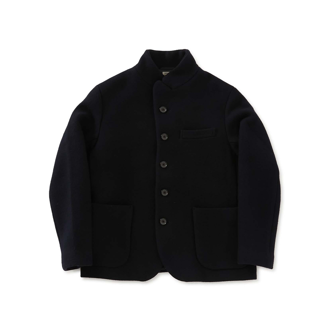 クラシックな雰囲気を持つスタンドラペルのジャケットを現代でも着やすいサイズ感にした定番のスタイルです。