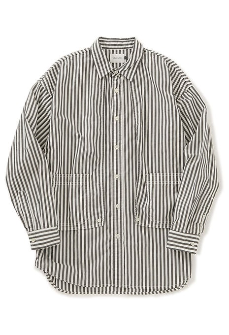 ロンドンストライプ生地を使用したドロップショルダーペインターシャツ。