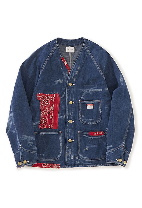vintageのバンダナを当て布に長年着込んだようなダメージ加工