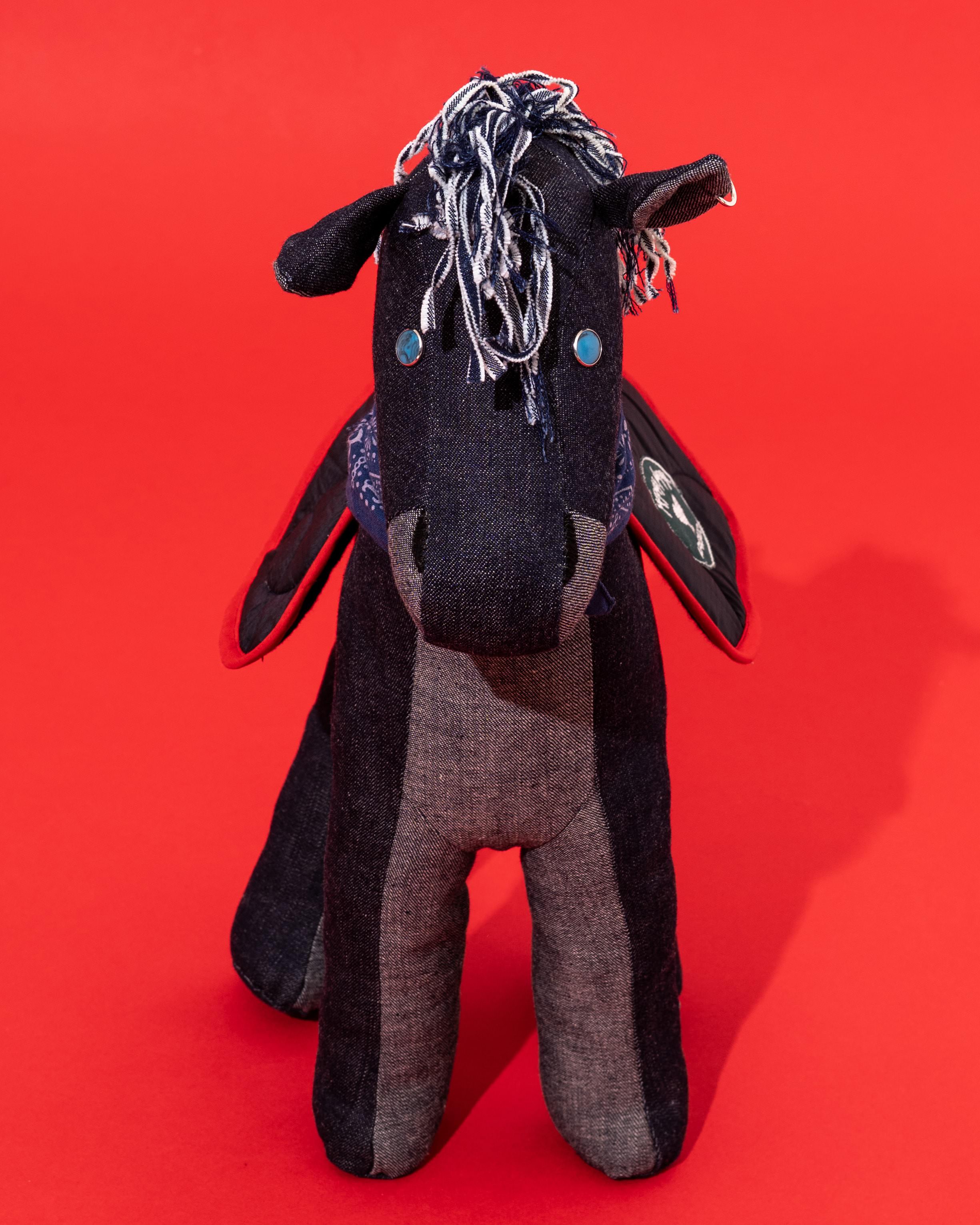 2026年の干支「馬」を、オリジナルデニムの残反などを使用して作りました。