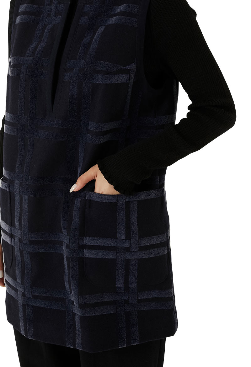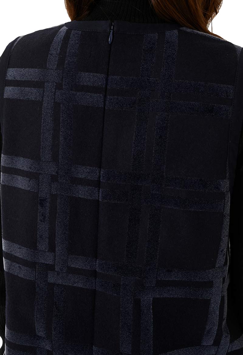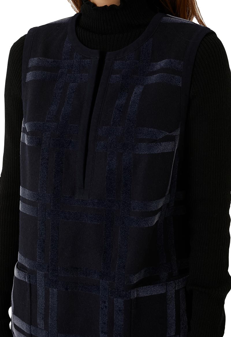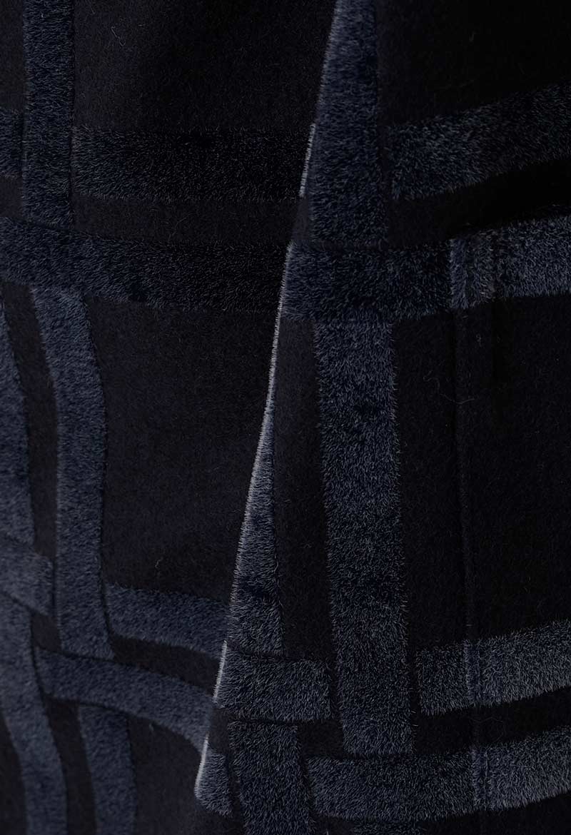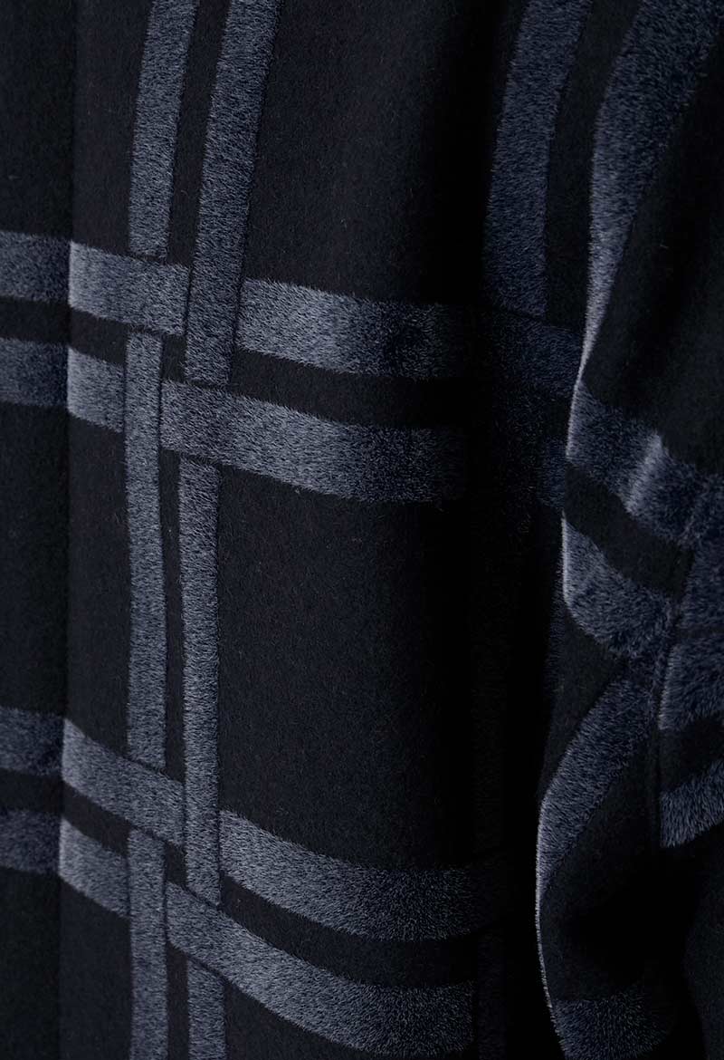 濃紺の軽いメルトンに長短二種類のフロッキーを混ぜ合わせてプリントを施しました。