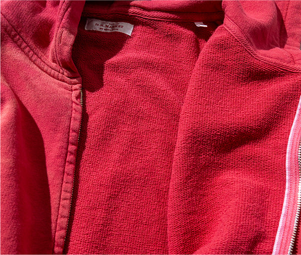 HRMオリジナルのリサイクルコットンを使用した、軽くて柔らかな裏毛スウェット生地です。