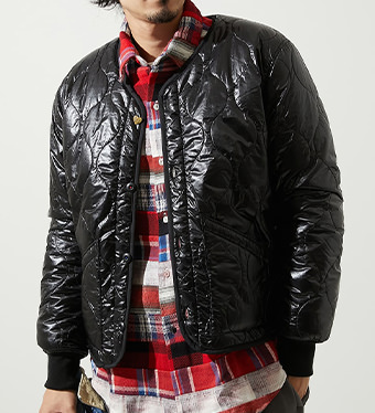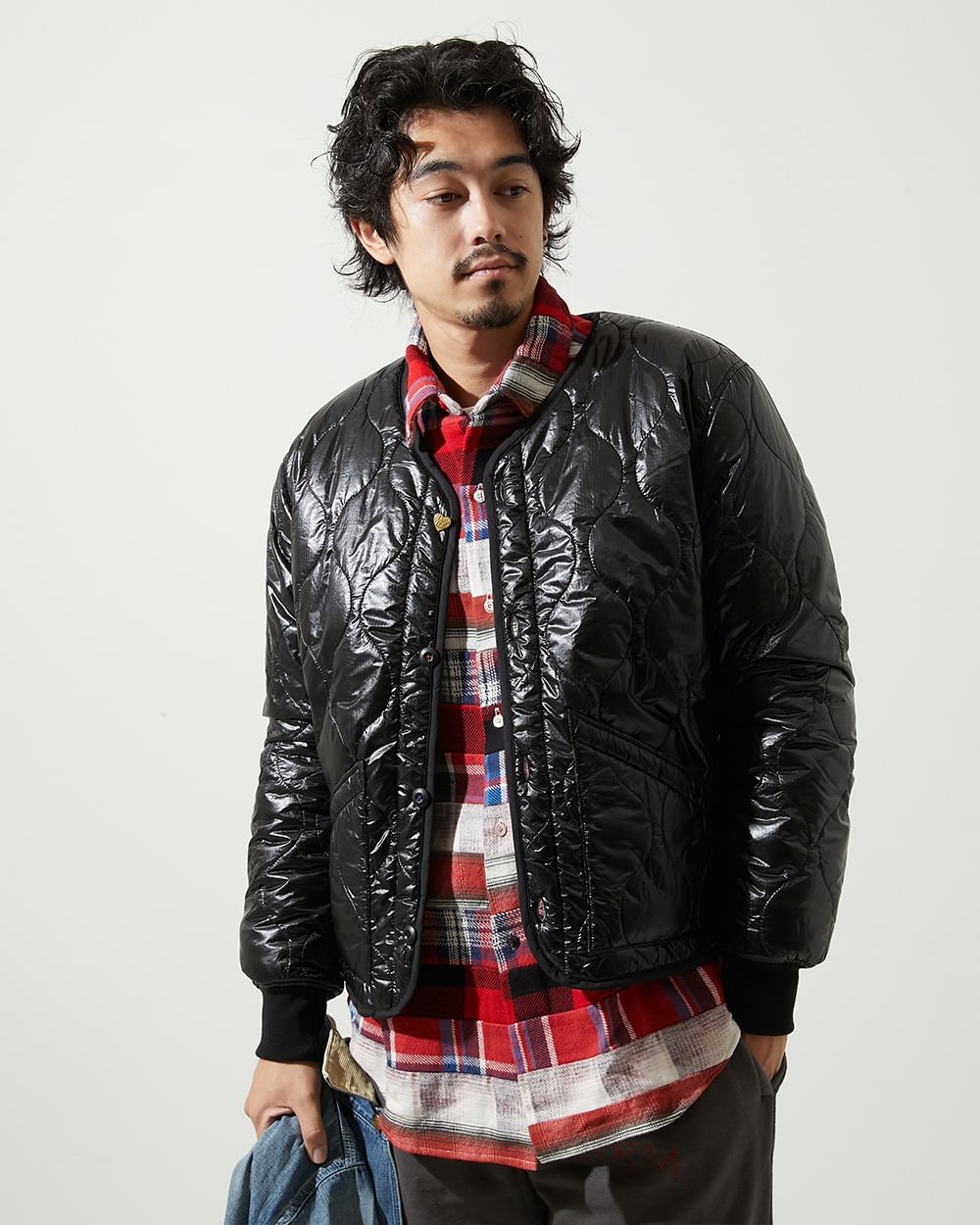 キルティングとボアのリバーシブルライナージャケット。ミリタリーのライナージャケットがモチーフの、レイヤードに適したジャストフィットデザインです。オリジナルのコンチョボタンを使用しています。