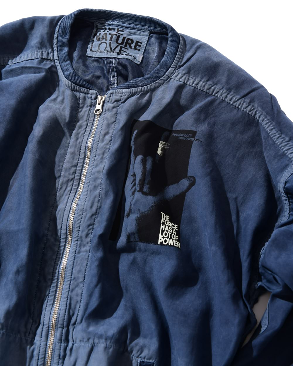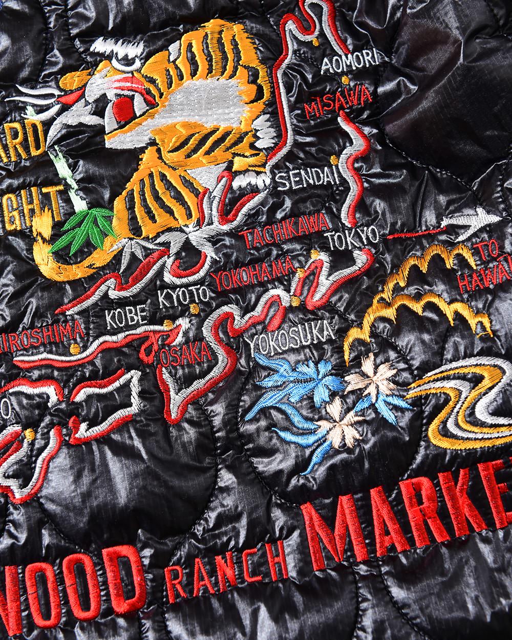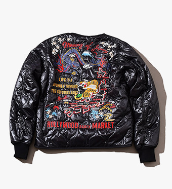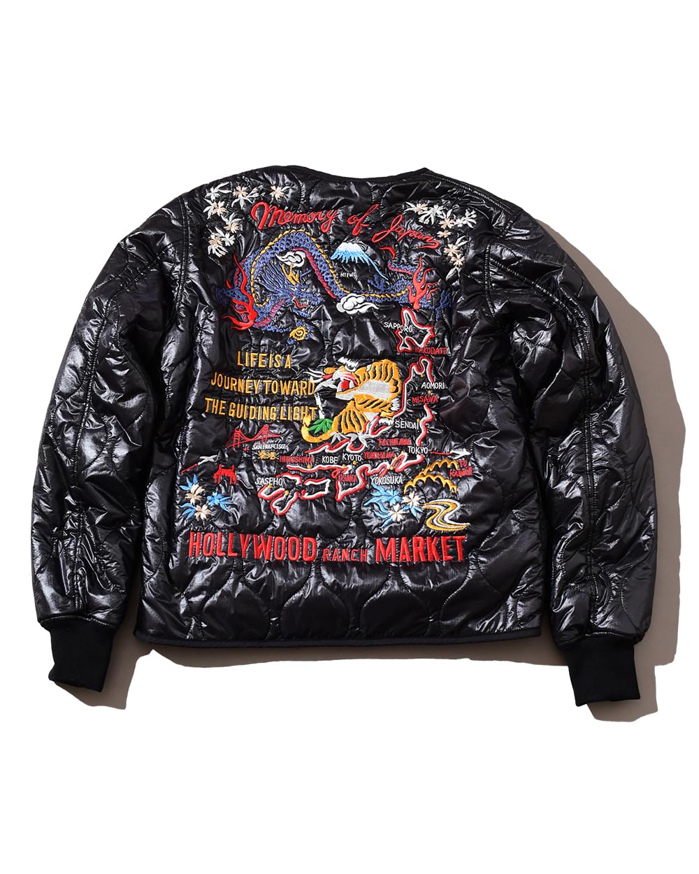 背面に施したスーベニアジャケットモチーフの刺しゅうが象徴的なライナージャケット。ミリタリーのライナージャケットがモチーフの、レイヤードに適したジャストフィットデザインです。オリジナルのコンチョボタンを使用しています。