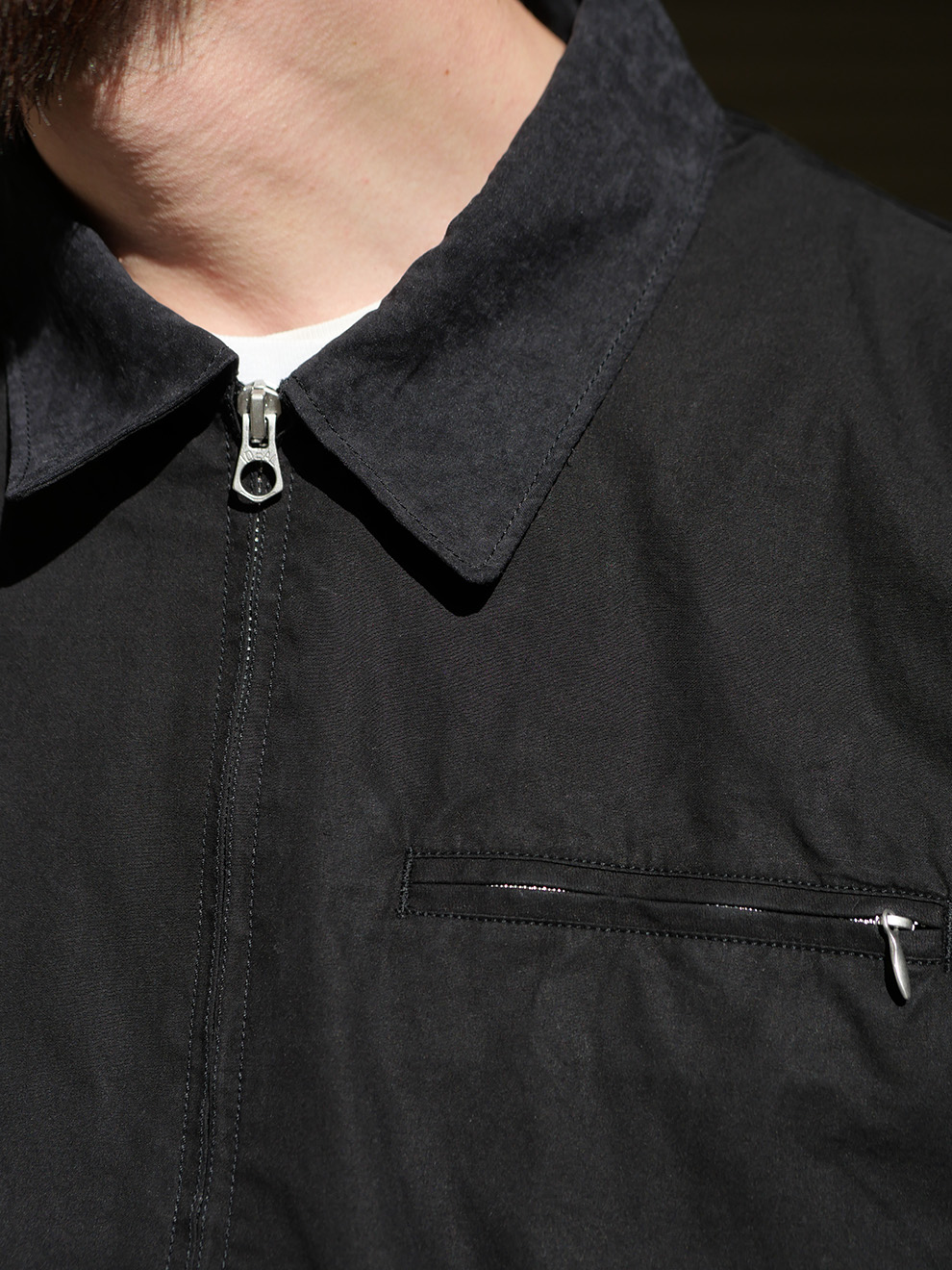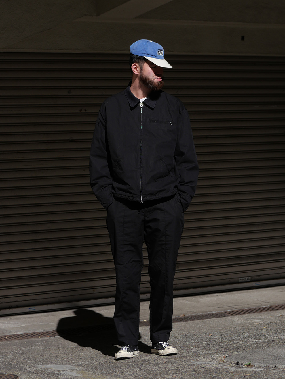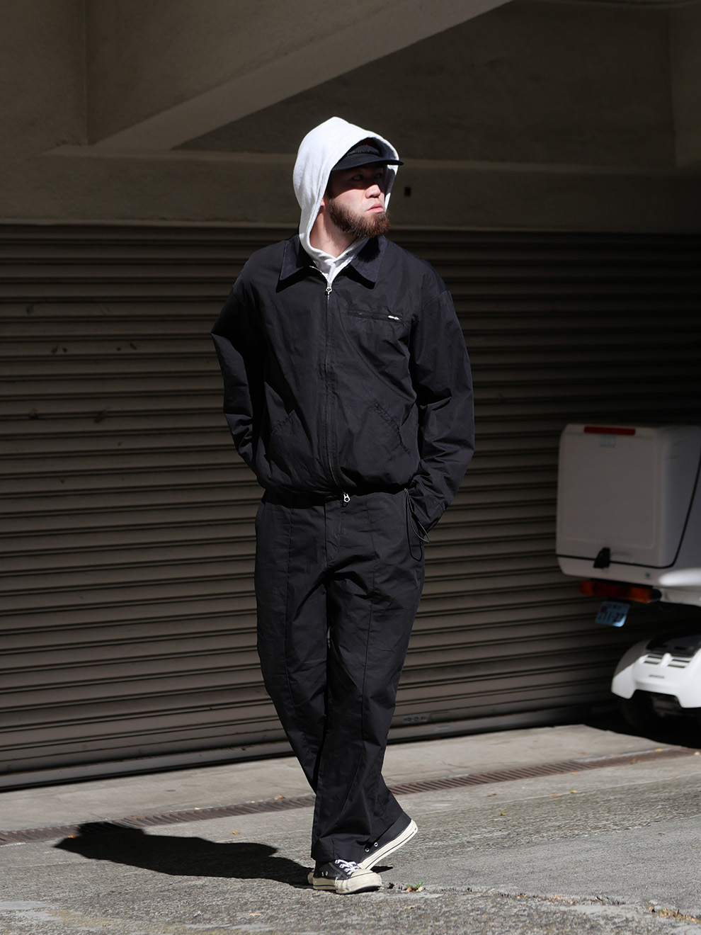“セットアップ”と聞くといわゆる襟付きのジャケットを連想しますが、今回はフロントがダブルジップになったワークテイストのジャケットを作成。