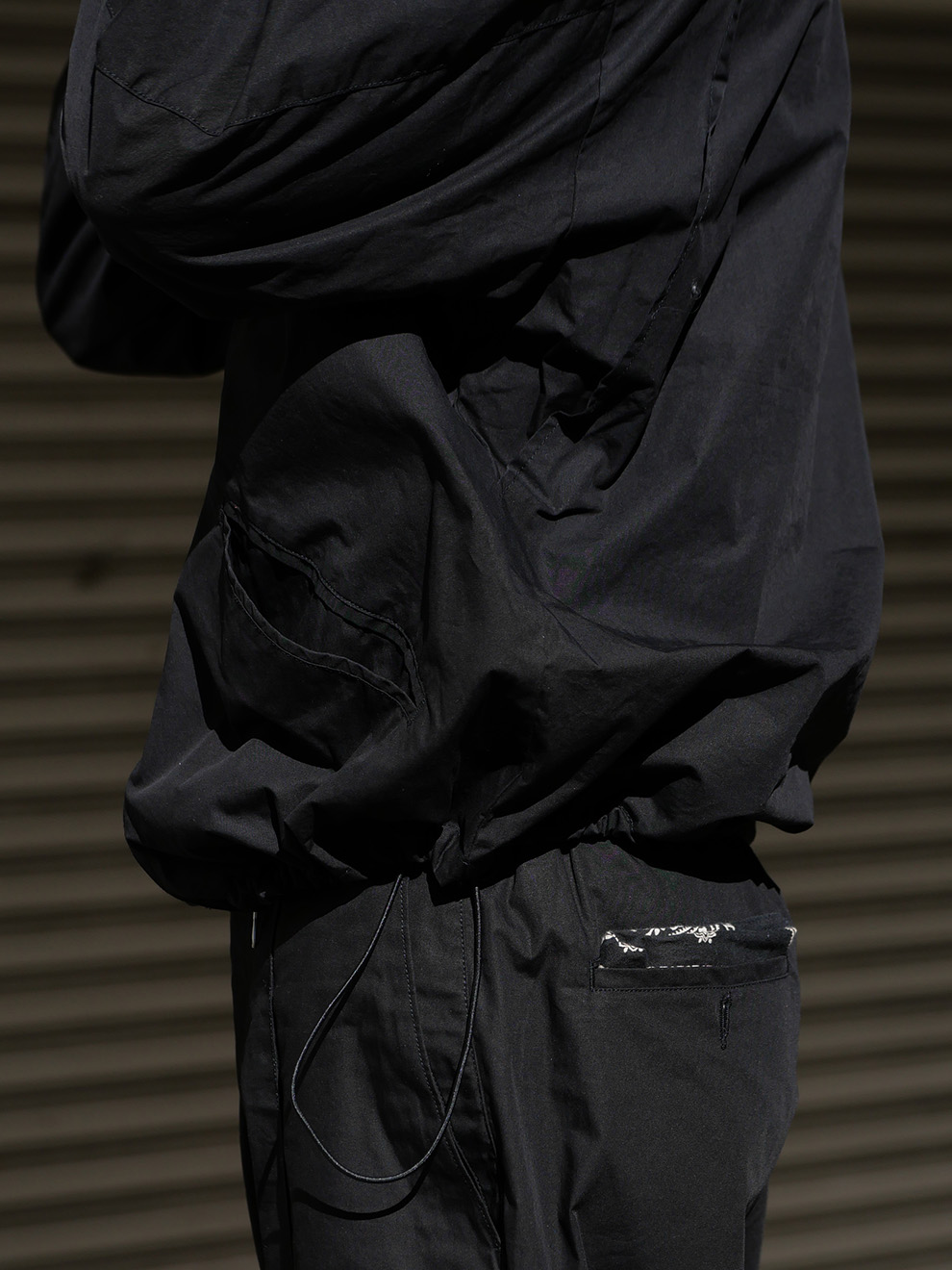 裾にはドローコードを完備。絞らずに着るのが基本的なスタイルですが、少し絞って丸く着るのもお勧め。