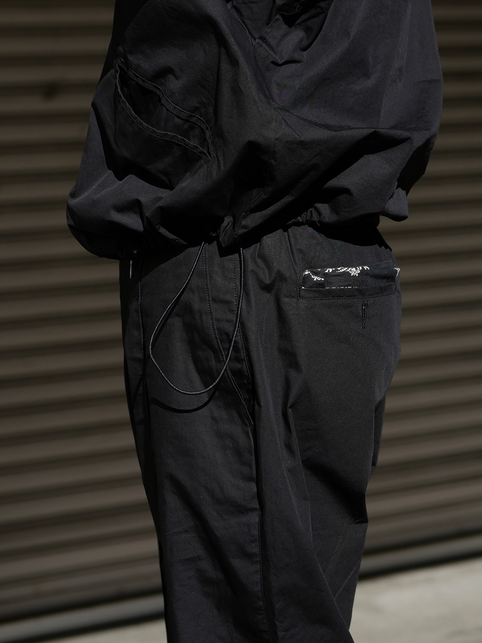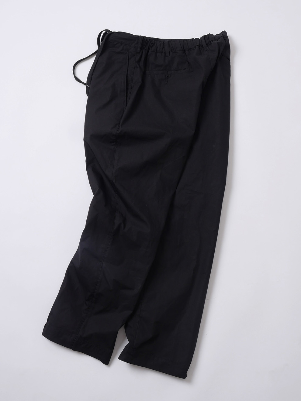 ウエスト部分にゴムとストリングを仕込むことで、履きやすさにもフォーカスしたパンツ