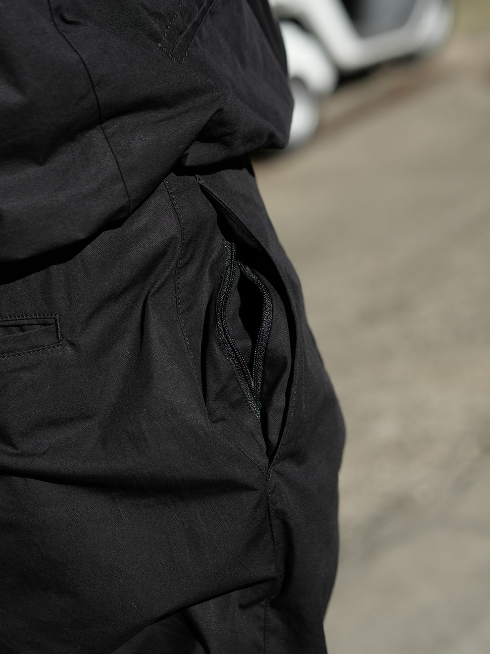 また、フロントポケットにはZIPを付けることで、落し物の心配は不要。適度なゆとりも持たせることで、お尻周りが張らないのも嬉しいポイント。