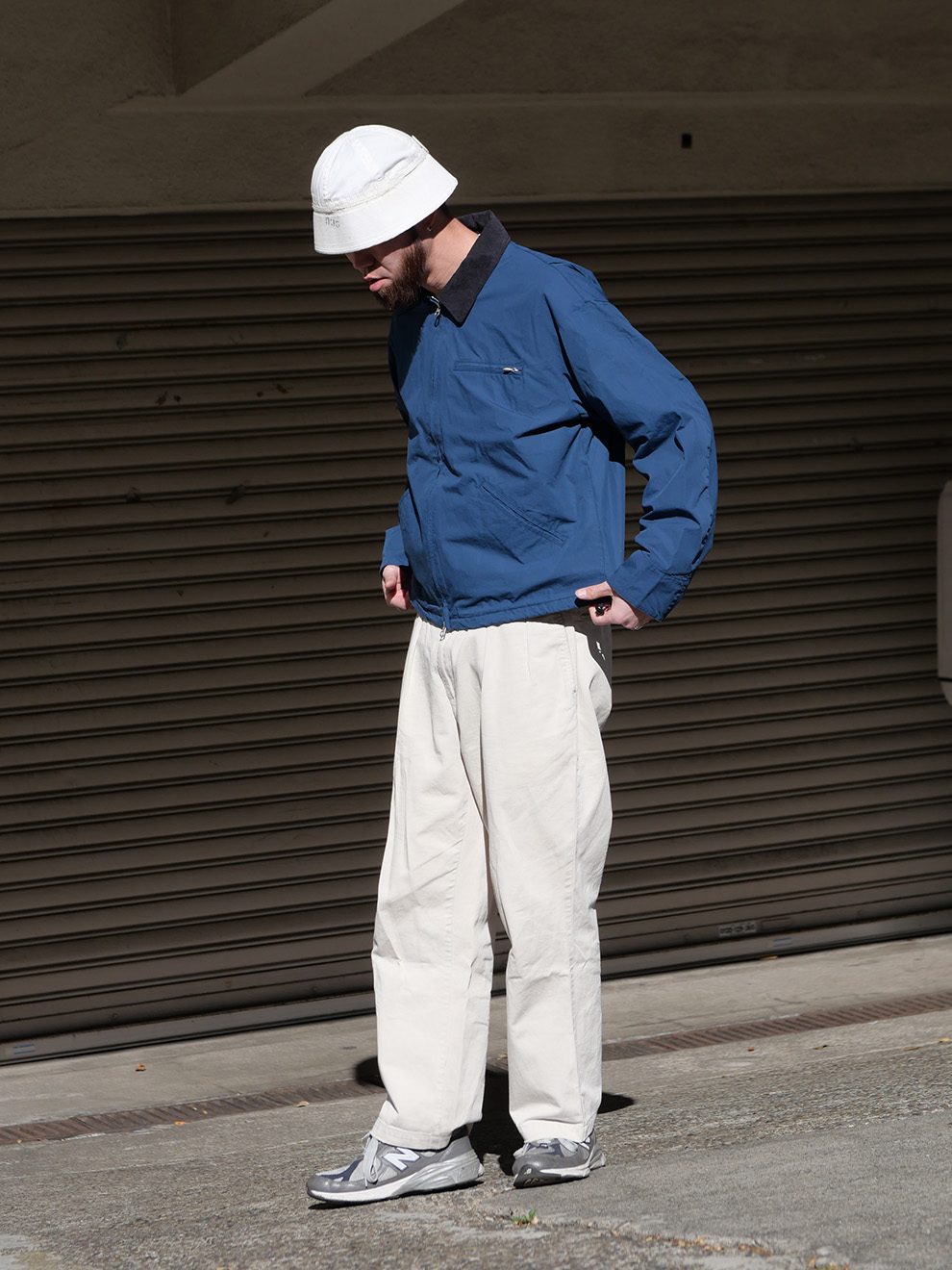 肩を落として大きく着るのではなく、アクションプリーツで可動域を確保。ワンランク上のワークジャケットではないでしょうか。