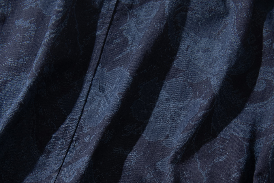 シーズンテーマ「辻が花」をイメージし、柄は抜染によって表現。色の濃淡にグラデーションをつけた抜染が、アンティーク調の柄のような深みを演出しています。