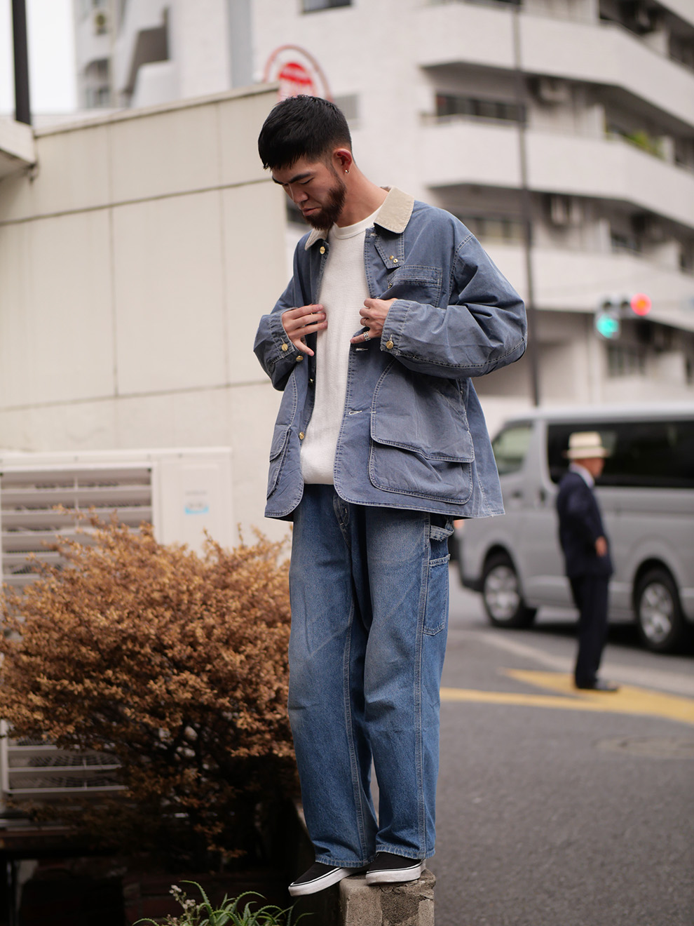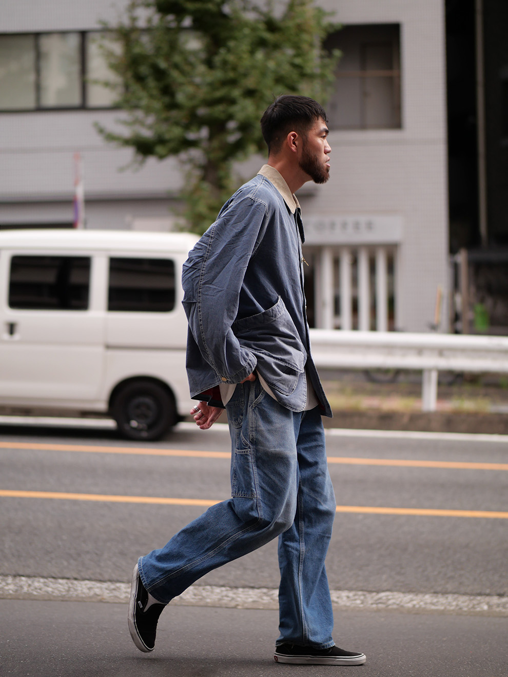縫製後にストーンウォッシュ加工を施すことで、長年着込んだような自然な色落ちと風合いを表現しています。