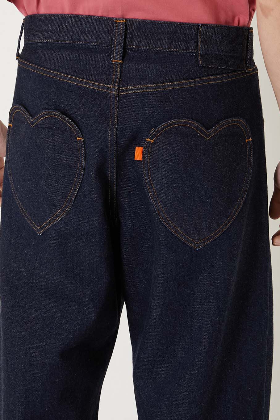 バックポケットに愛らしいハートを配した遊び心あるデザイン。ストレートシルエットでスタイリングしやすく、カジュアルな中にブランドらしいユーモアを感じさせる一本。