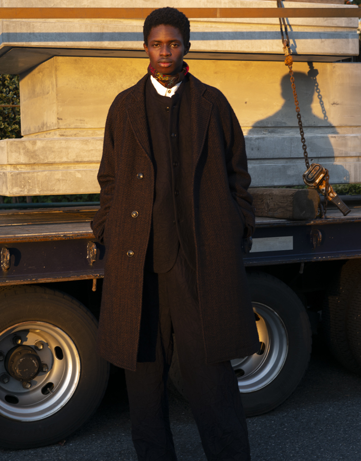 ラペルのボタンを留めることで、フロントのアレンジが可能で、コンパクトなVゾーンはインナーを選ばず重ね着しやすい仕様になっています。軽やかな着心地と、ラグランスリーブの程よくゆとりのあるシルエットが特徴のチェスターコートです。