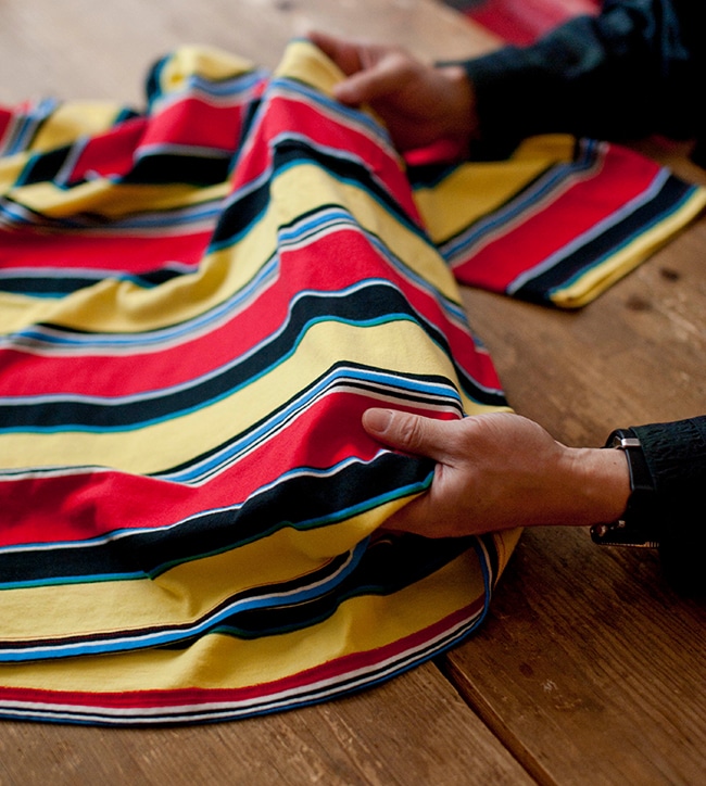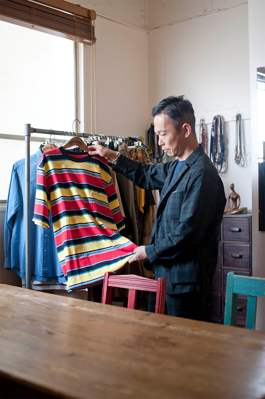 「ボーダーのTシャツはバスクシャツなど港町の労働者のイメージがあり、一方でマルチボーダーといえば、アメリカ・カリフォルニアのサーフカジュアルに代表されるように、同じボーダーでも印象ががらりと違いますね。