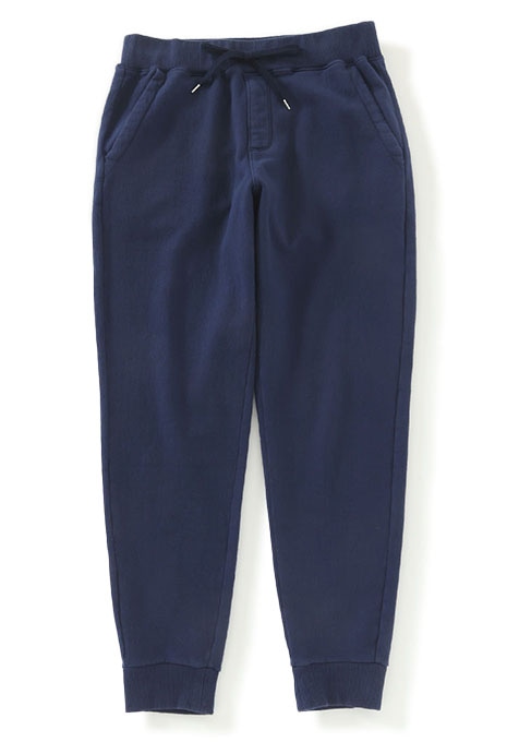 特殊な編み方で実現させたスーパーストレッチ仕様のスリムタイプのスウェットパンツ。 程よい厚みがありながら軽量で、動きも制限されません。滑らかな肌触りと裏パイルが施された暖かな穿き心地も魅力。また、太くしっかりとした締め付けの無いウエストリブや、程よく絞られた裾のリブも特徴。細目のシルエットはカジュアルはもちろん、ジャケットスタイルにも対応してくれます。バックポケットに「H」刺しゅうを施して仕上げています
