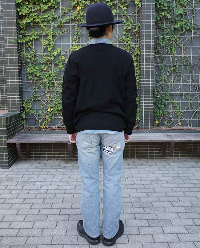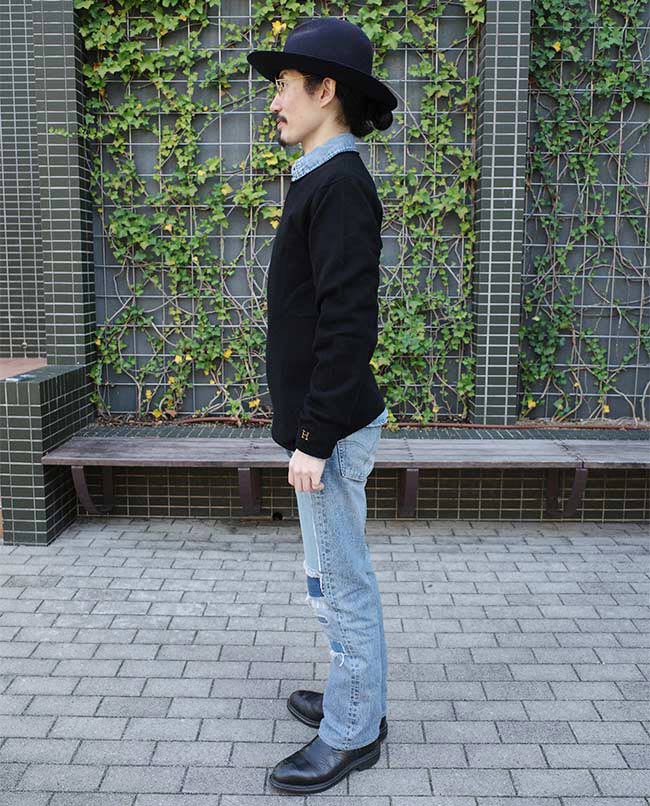 POINT / シャツをレイヤードする際は、Mサイズだとひびいてしまうので、Lサイズで着用します。お仕事でYシャツの上から着用する場合などはワンサイズ上げての着用もおすすめです。