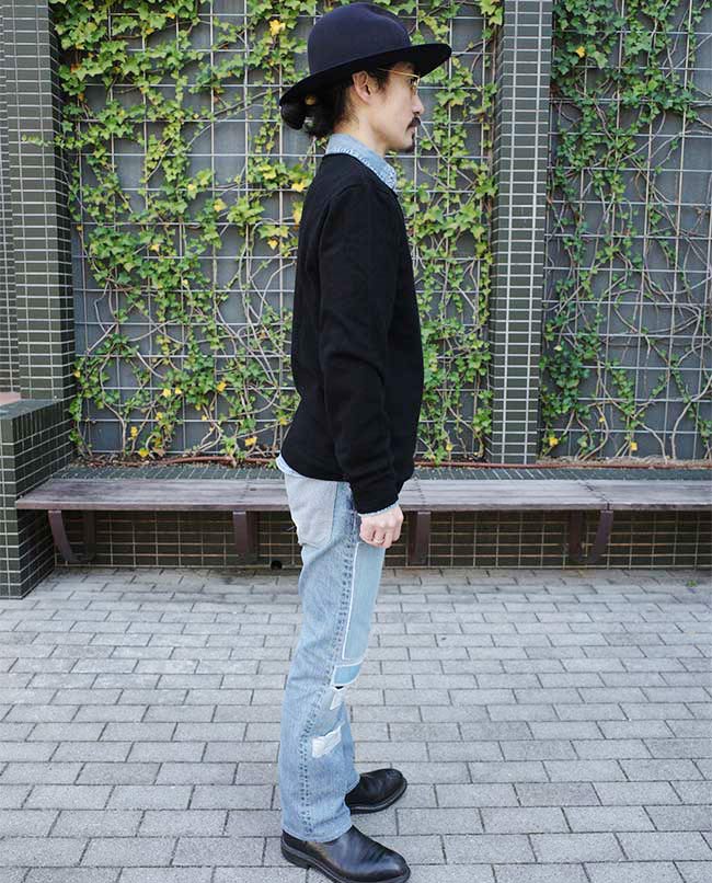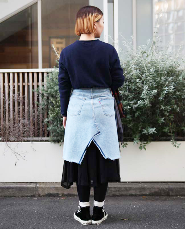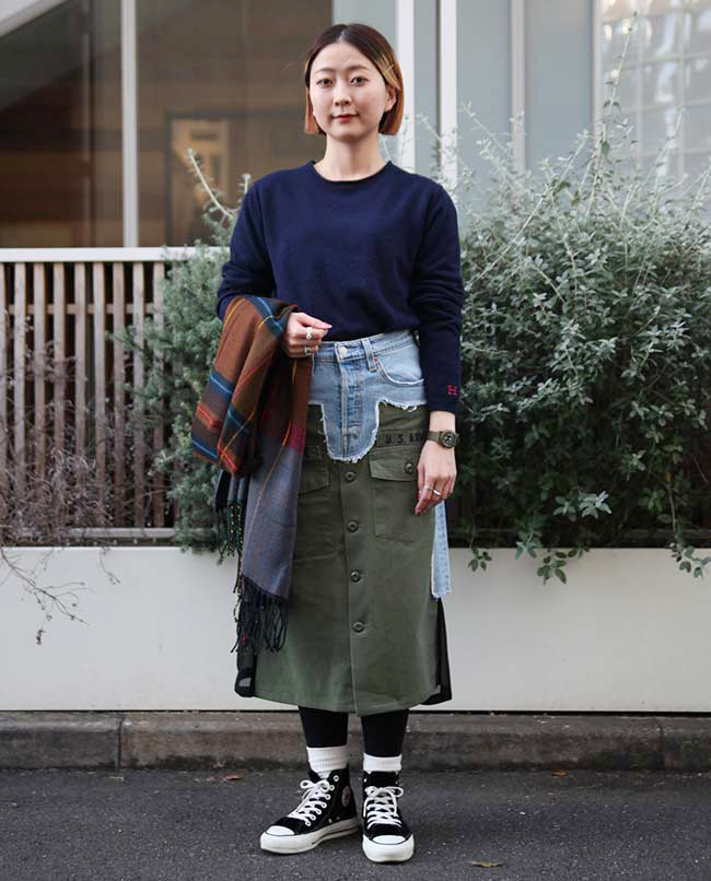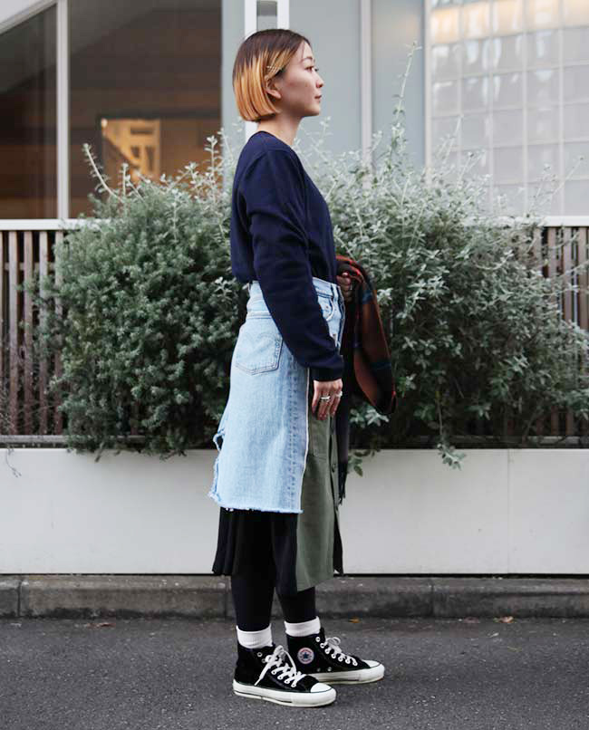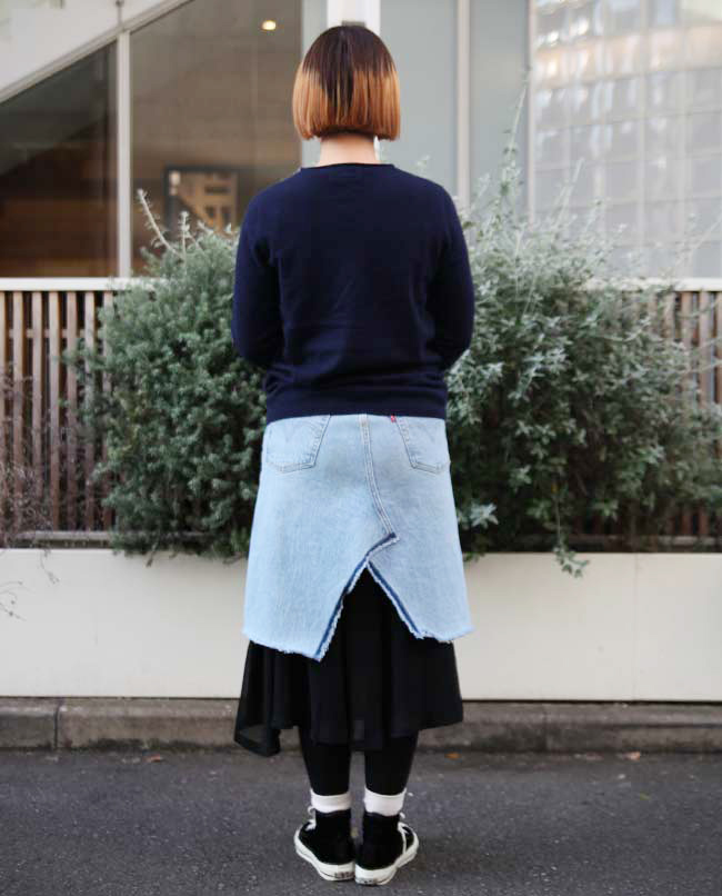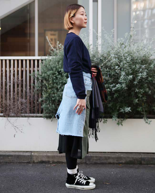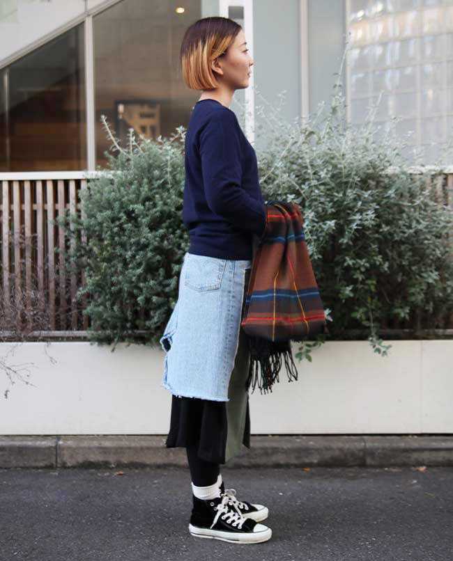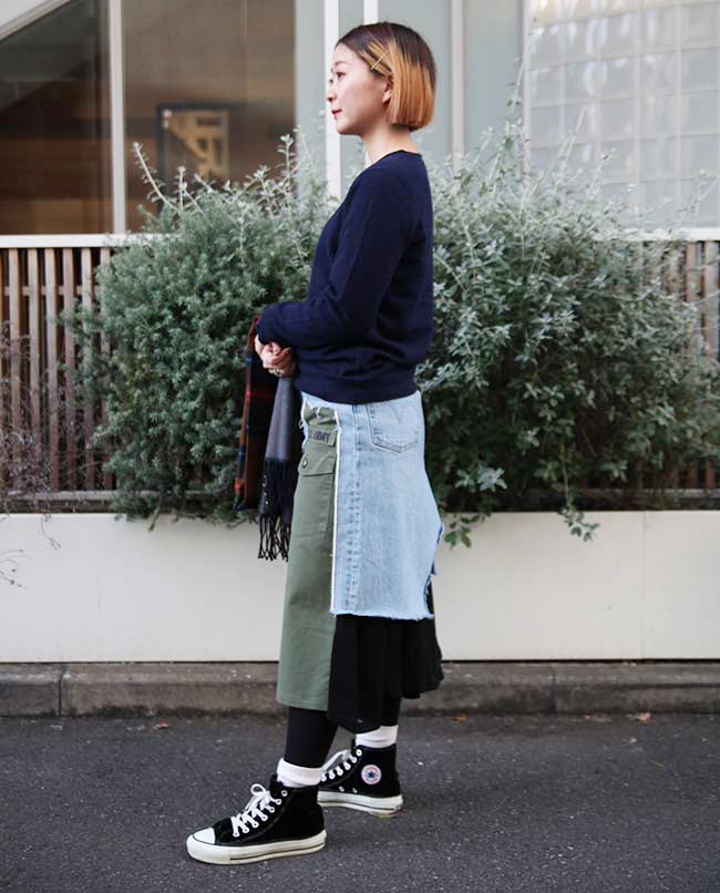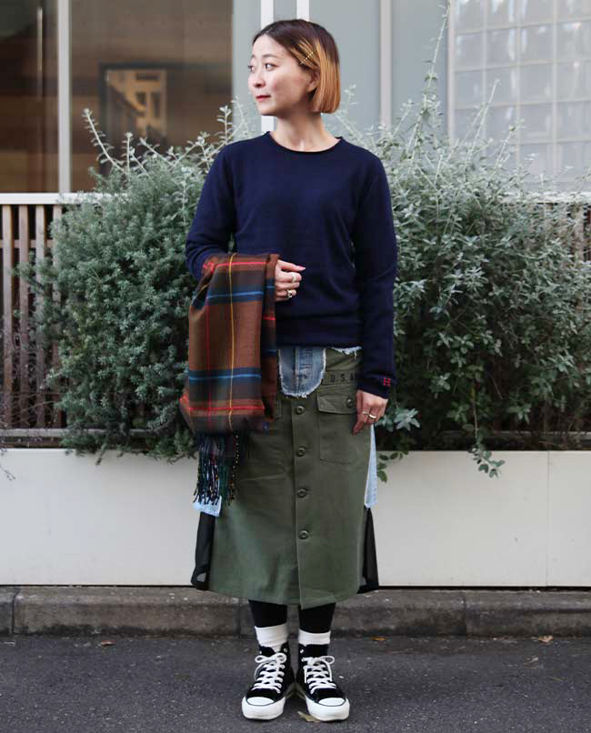 POINT / オーバーサイズで着用しました。裾をインすることでシルエットに変化をつけました。ネック周りも広がるので、タートルネックやマフラーを合わせて防寒性も考慮しました。