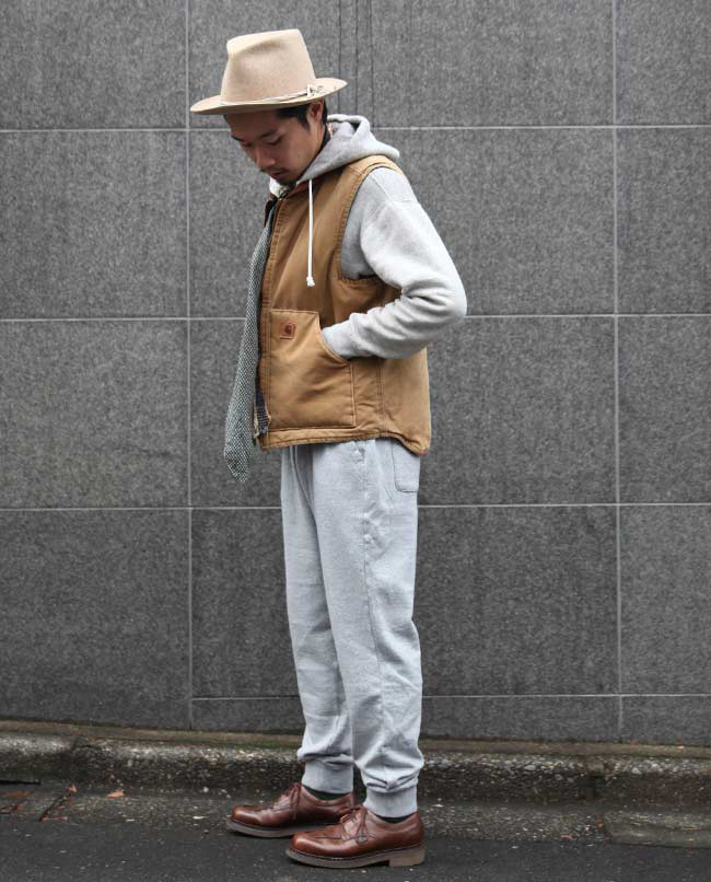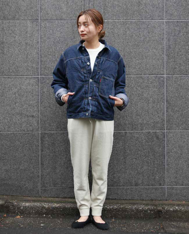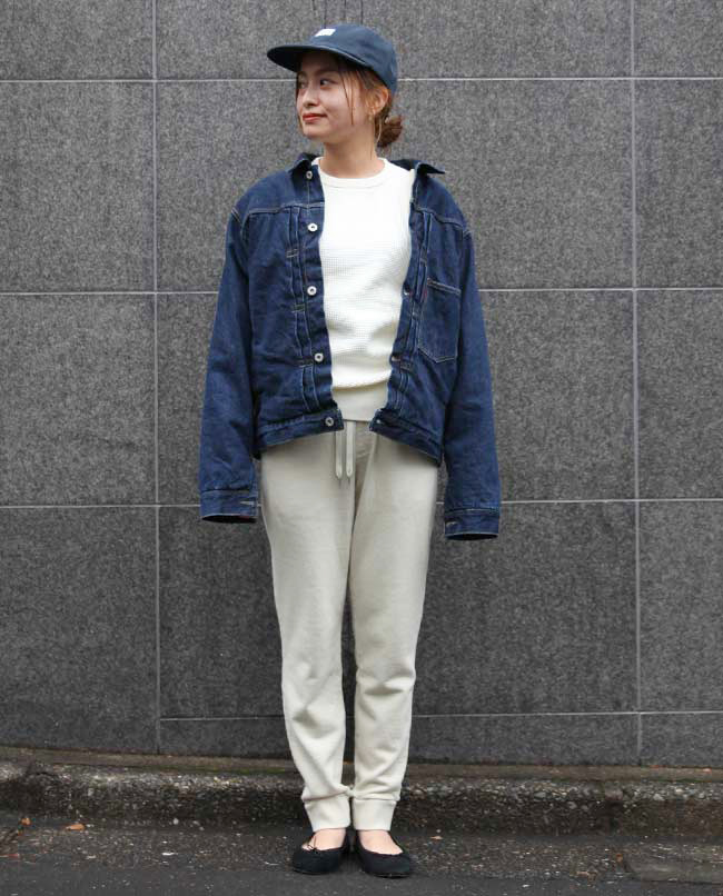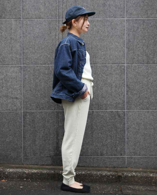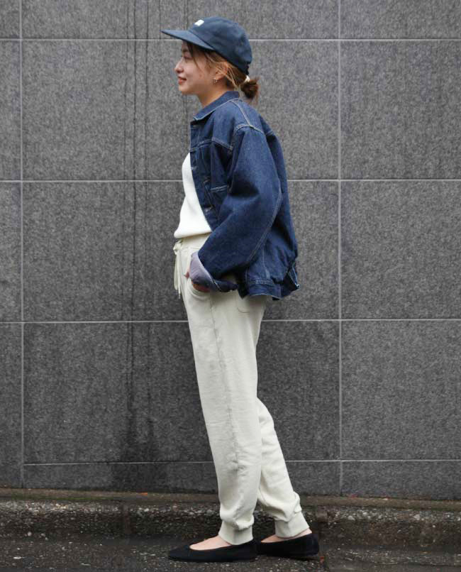 POINT / Lサイズを履くとオーバーサイズで合わせる感じになるので、TOPSをインして紐をきゅっと絞っています。 裾はリブになっていて落ちてくる心配はなく、あえてルーズに合わせたい方は、Lサイズもおすすめです。