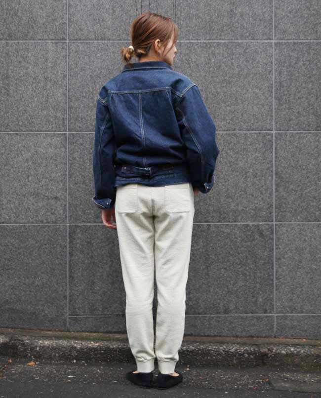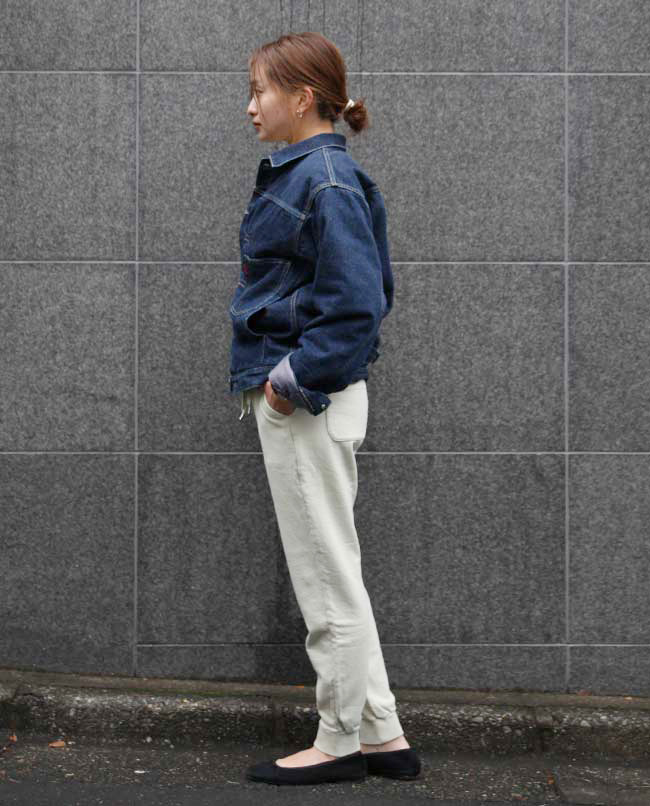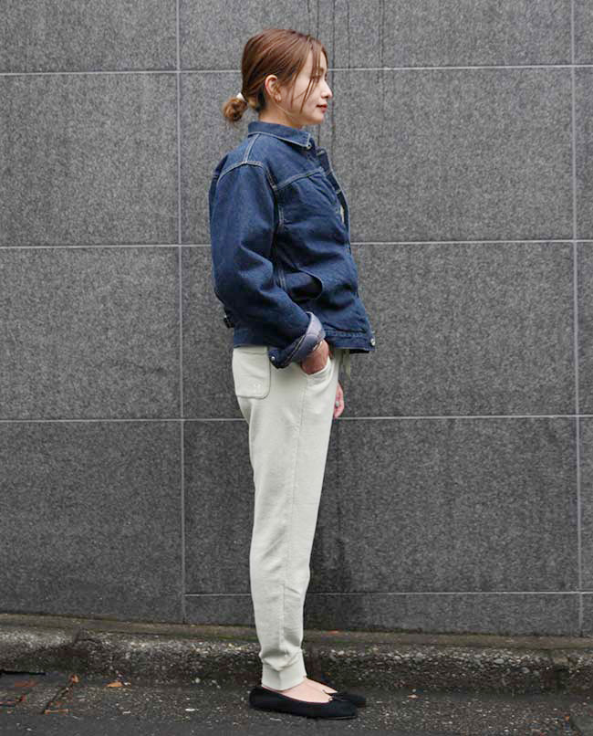 POINT / 女性が着るならSサイズがジャストです。すっきりとした印象になるので、アイテム次第でキレイ目やカジュアルにもコーデが可能です。 ウエストがゴムなのでSサイズだと落ちてくることがない為、今回はあえて紐は下ろしてみました。