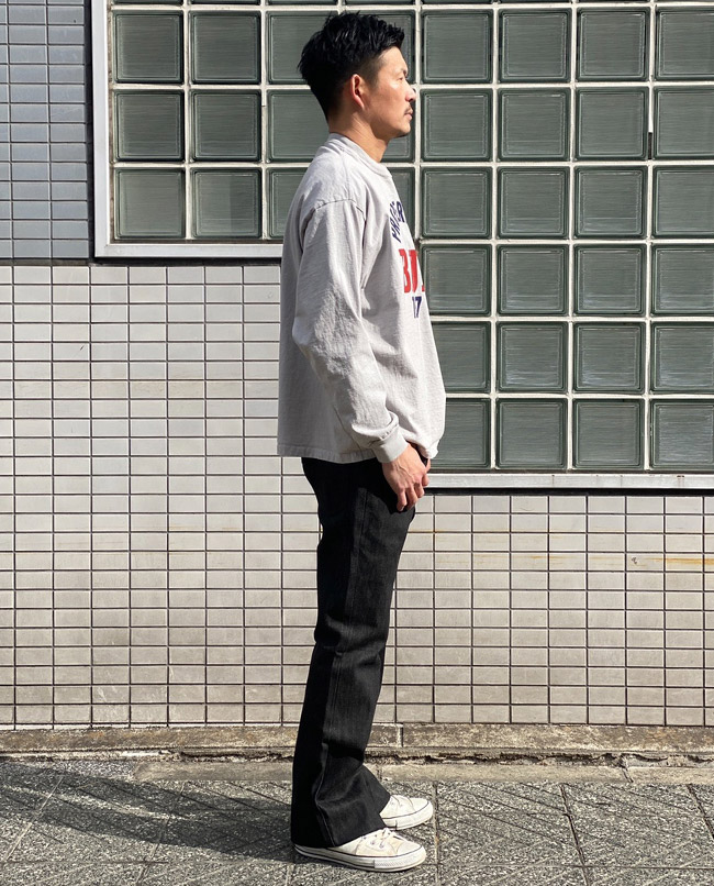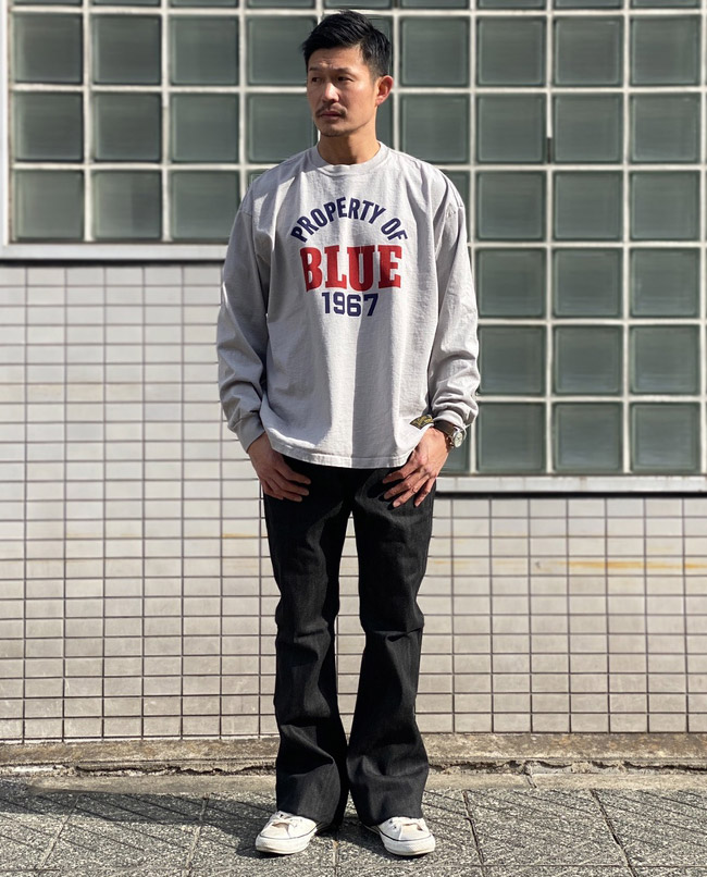 1930~40年代に存在したRUSSELL ATHLETICのスポーツラインSOUTHERN MANUFACTURING CO.を復刻した、アメリカ製のヘリテージラインとBLUE BLUEのコラボレーション。アメリカ製のドライタッチなヘビー天竺を使用したロングスリーブTシャツです。経年変化が楽しめる染み込みプリントのカレッジロゴがポイントです。身幅がゆったりしたシルエットは性別問わず着用いただけます。
