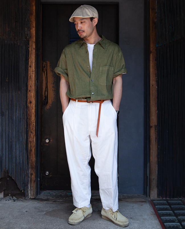 POINT / 自分が着るならこのサイズを選びます。ジャストなサイズ感で綺麗なシルエットを演出できます。トップスと靴にボリュームを持たせていますが、Tシャツ姿にスニーカーを選択しても適度な雰囲気を出せそうです。
