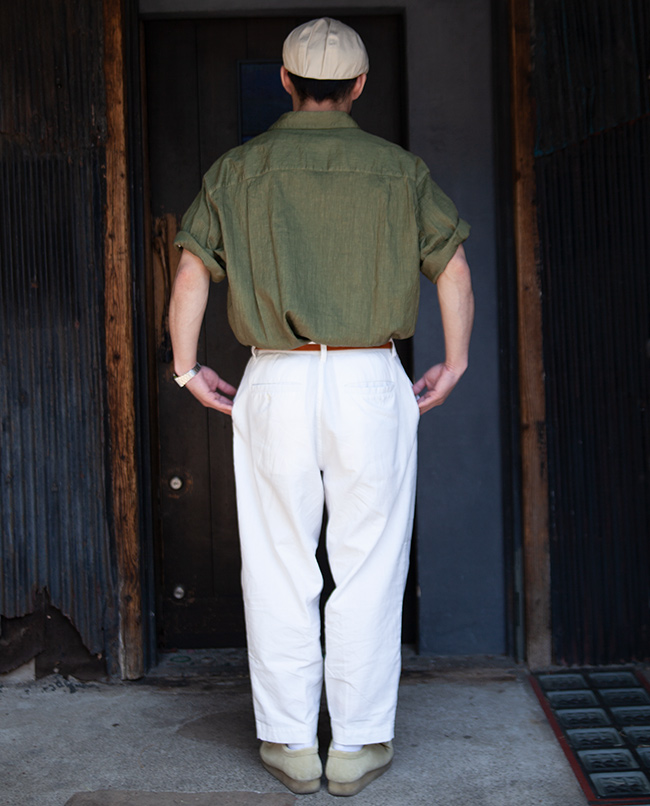POINT / ジャストサイズからワンサイズ上げて、見た目が若干ゆとりのあるシルエットになりました。シルエットにゆとりを持たせたい方や、ルーズなサイズ感がお好みの方はこちらのサイズをおススメします。