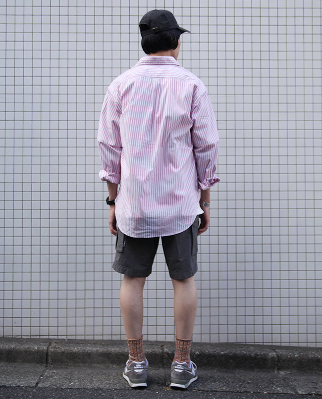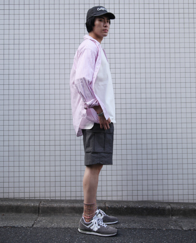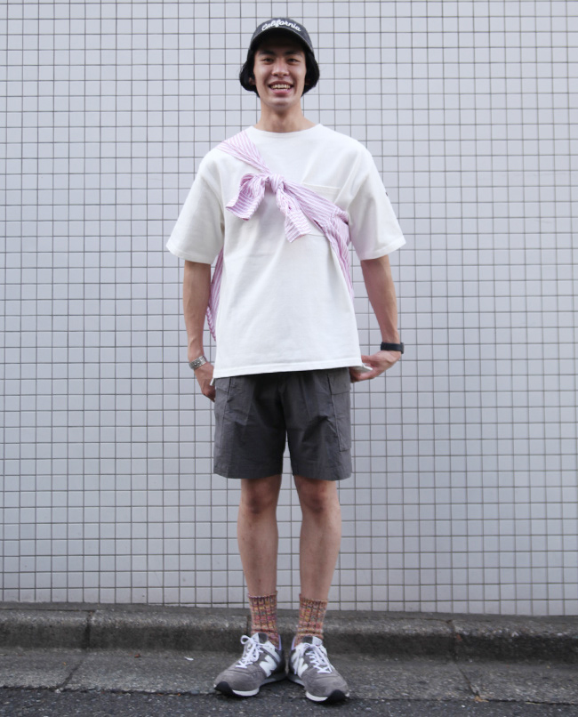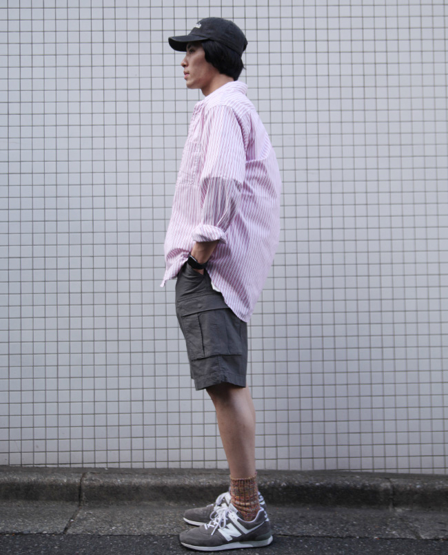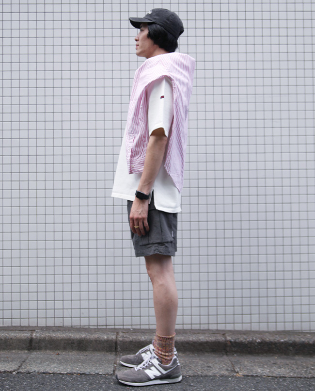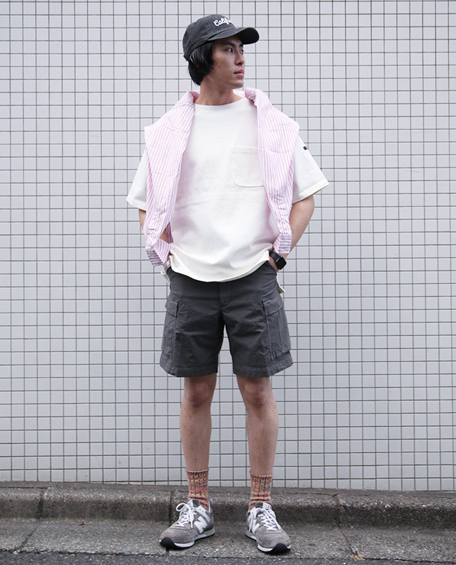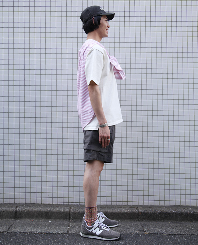 POINT / ゆったり着用したい方におすすめのサイズ感です。ビックシルエットで着用することで、Tシャツの肌離れが良く風も通りやすく、蒸し暑い日もさらっと着用出来ます。オーバーサイズで着用する時はショートパンツを合わせるとバランスがとりやすいです。