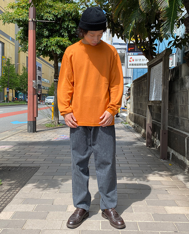 OFF WHITE,GREY,BLACK,ORANGE,OLIVE,NAVYPOINT / スッキリしたシルエットがお好みの方にオススメのサイズ感です。丈もジャストな長さとなるので様々なアウターのインナーとしても活躍できるサイズ感です。これからの季節アウターにひびかないサイズ感は重宝しそうですね。