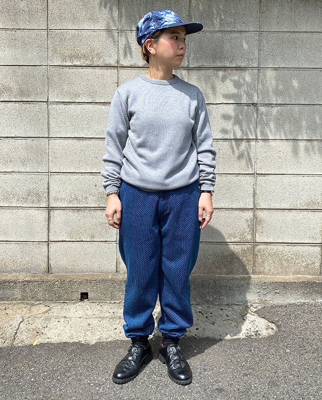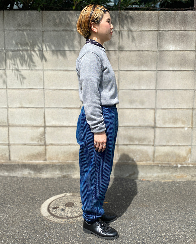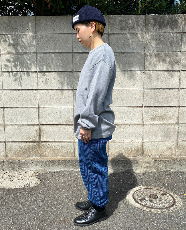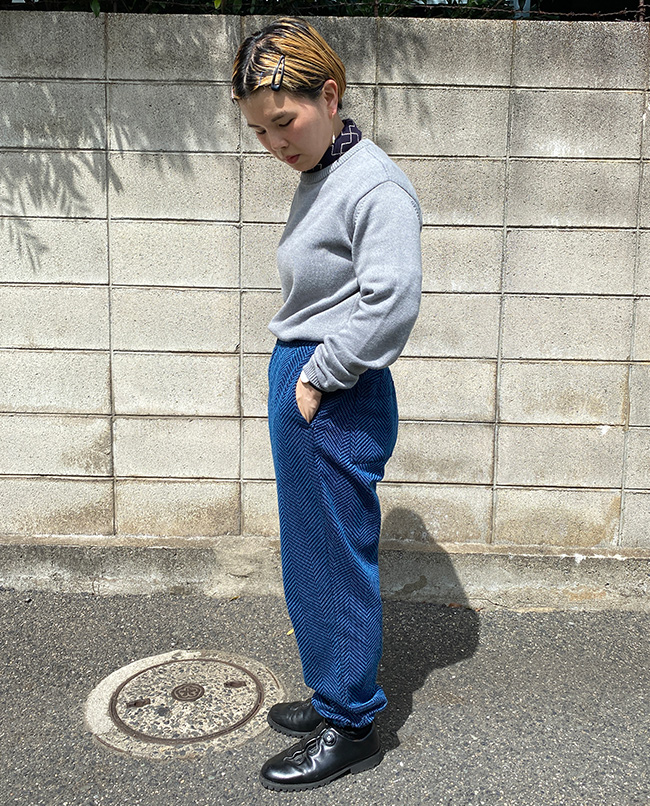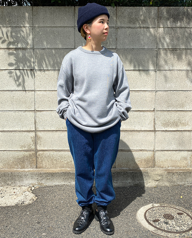 POINT / コンパクトなシルエットがお好きな方におすすめのサイズです。タックインしてスッキリとまとめました。ボリュームがあるスカートなどのボトムスとのコーディネートもおすすめです。